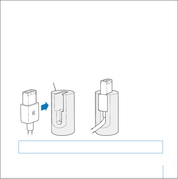 Push the end of the FireWire cable into the cable adapter, as shown.