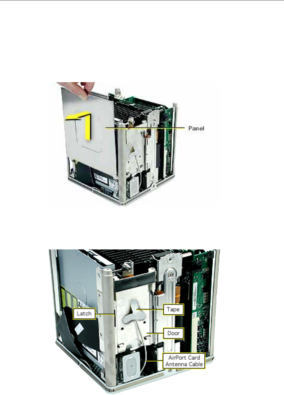6. Close the AirPort Card door and secure the antenna cable (and AirPort Card).