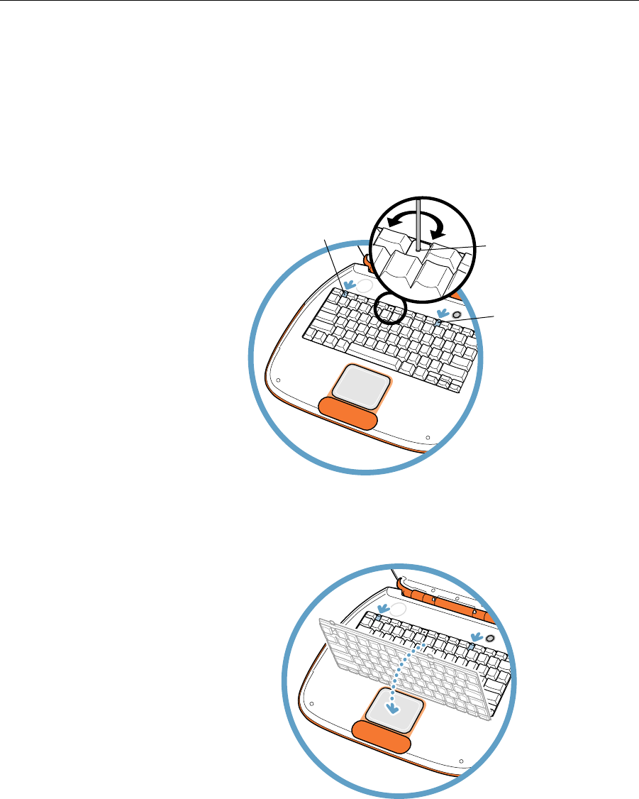 3 Flip the keyboard right side up, and secure it with the two plastic tabs.