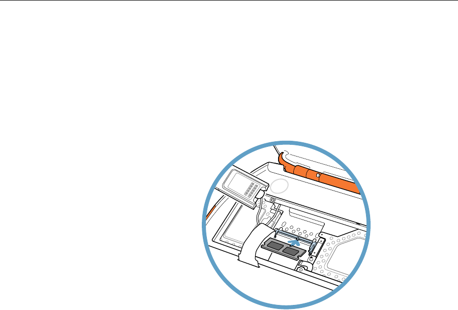 • Replace the RAM shield, AirPort Card, keyboard, and battery.