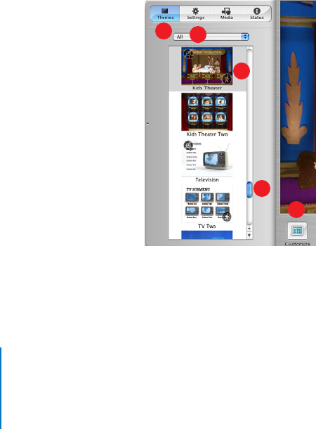 Move the scroller [D] up and down to see the themes. Use the pop-up menu at the top to check