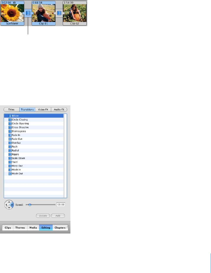 EAdd button: Click to apply the transition to a selected clip in your movie. You can also select