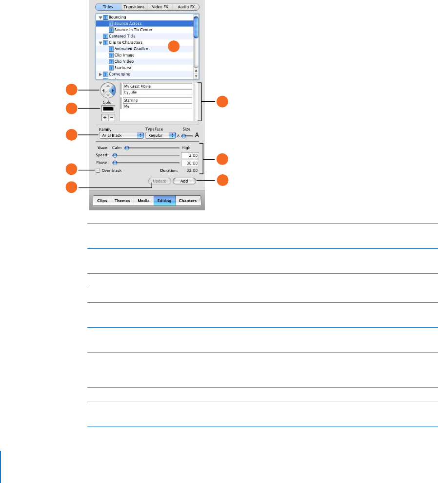 ATitles list: Select a title style to add to your movie. Click the disclosure triangle next to a title to