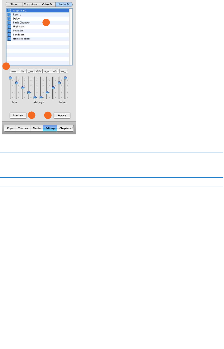 AEffects list: Select an effect in this list to change the sound of audio in your movie.