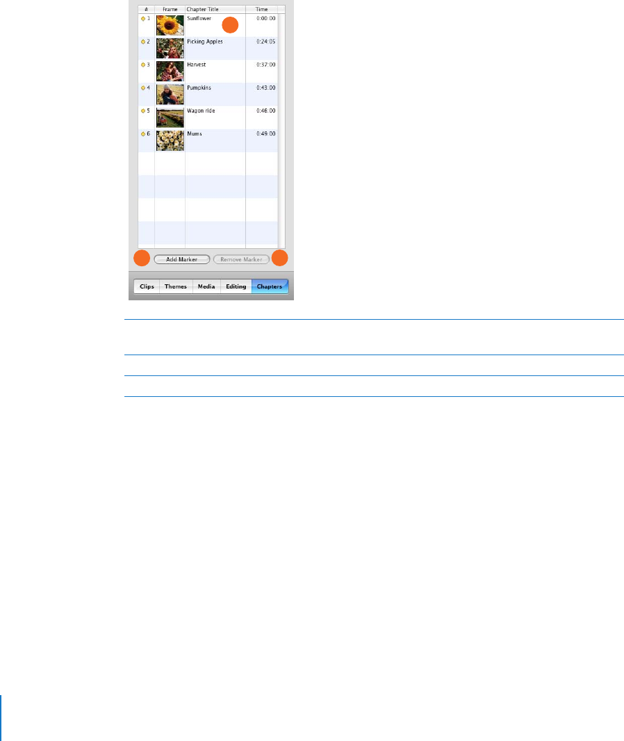 AChapter titles: A new chapter appears in the list each time you add a chapter marker.
