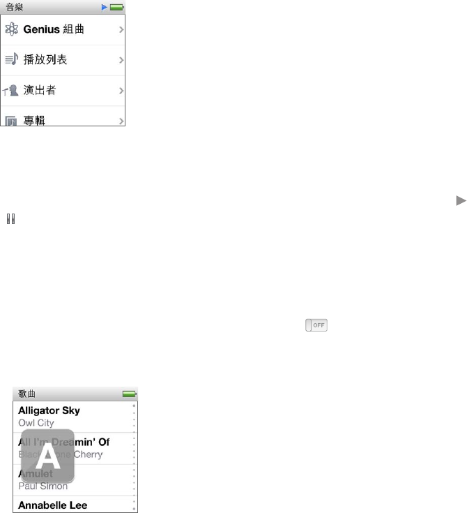 當您啟用 iPod nano 時,您會看到“主畫面”螢幕。