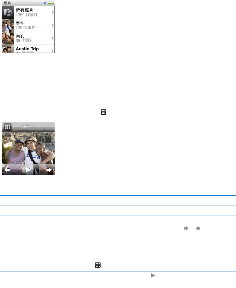 錄,或檢視照片等功能的選項。點一下圖像來打開它,然後使用手勢來導覽(請參閱 第9頁「使