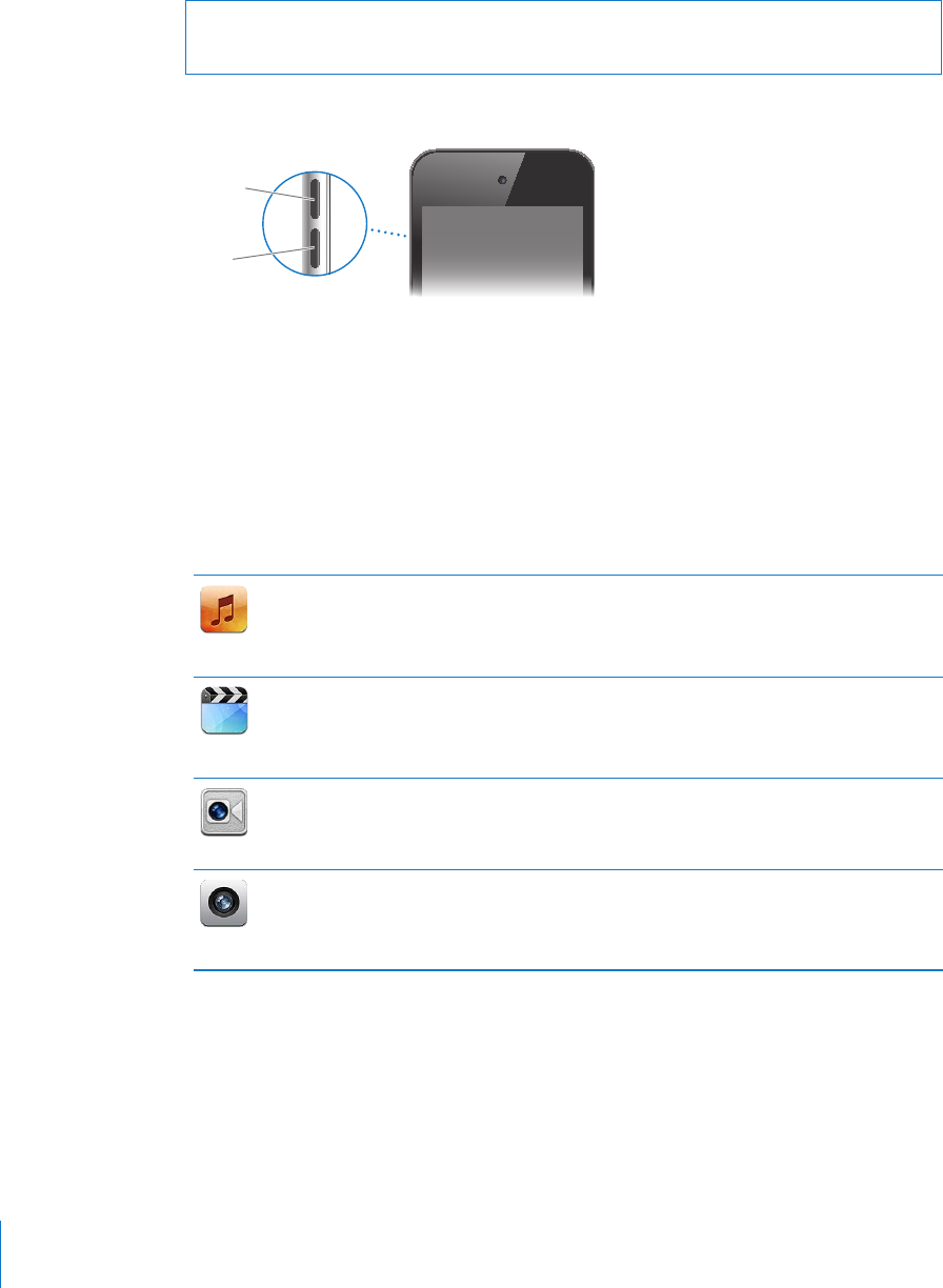 Batteribytte: Det oppladbare batteriet i iPod touch skal kun skiftes av en autorisert