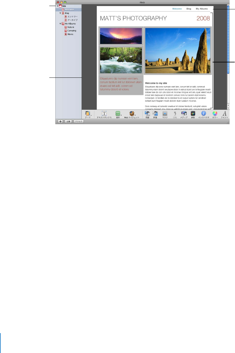 iWeb の概要とWeb サイトを作成する方法につ