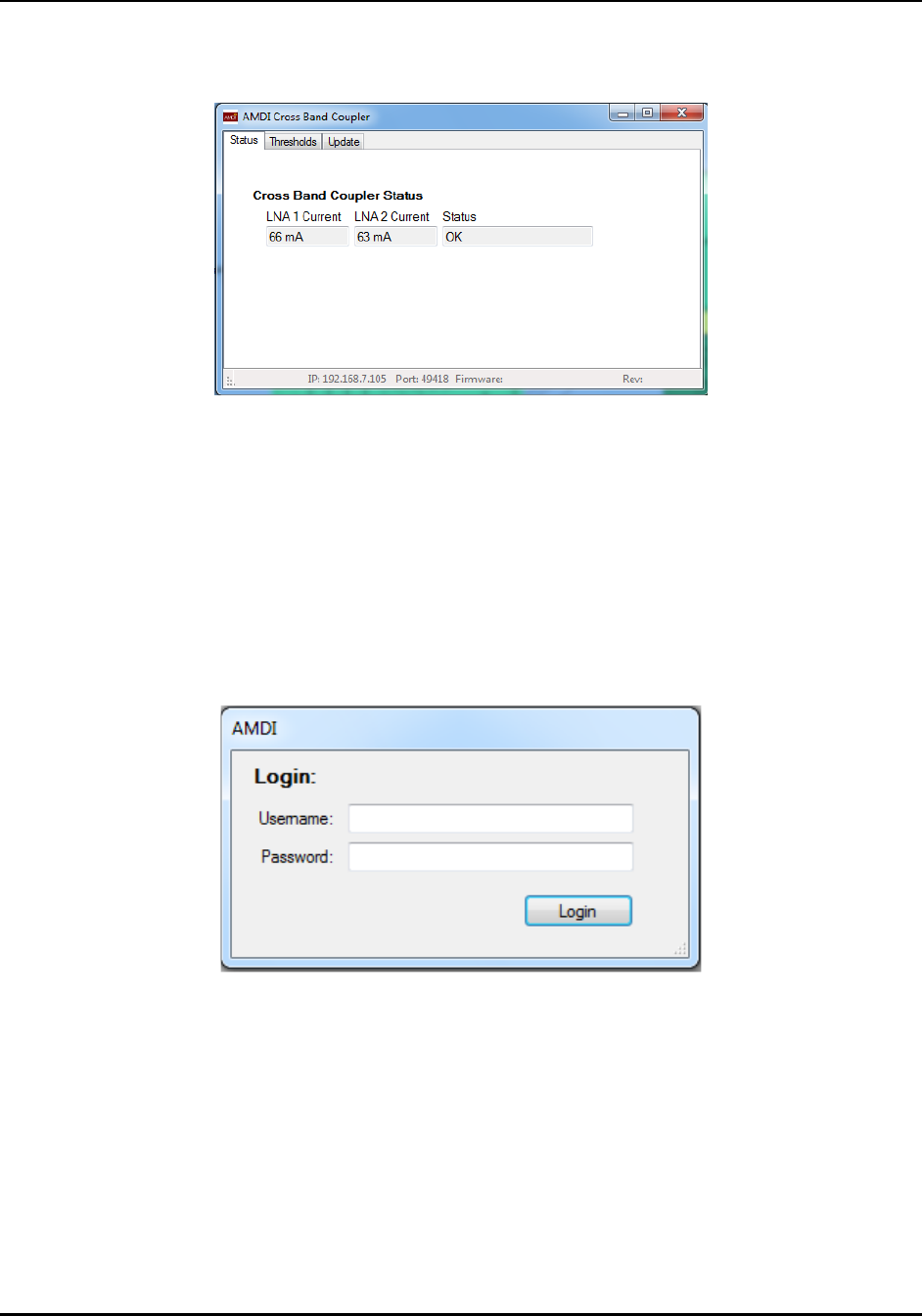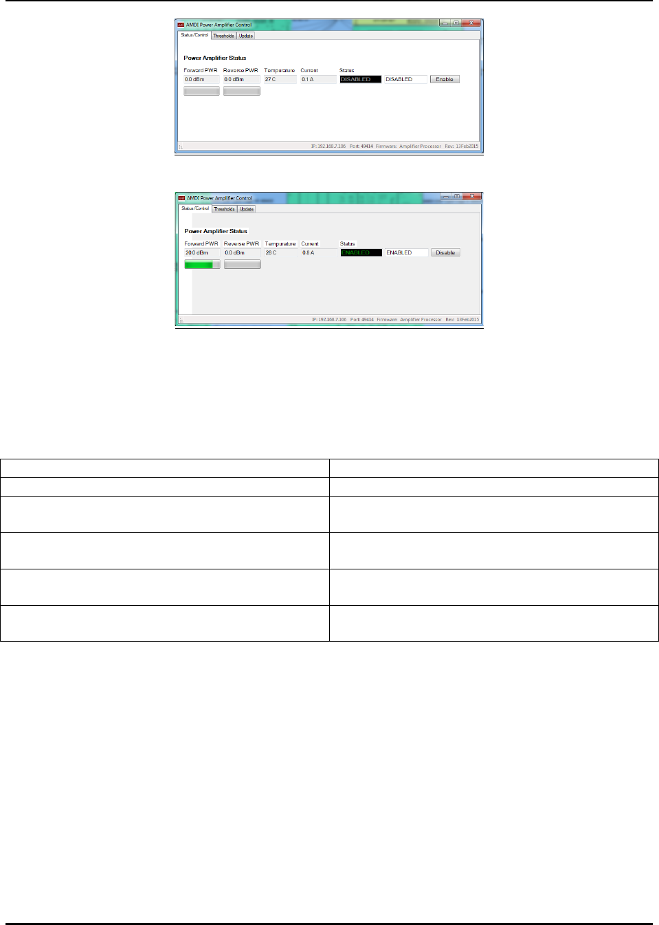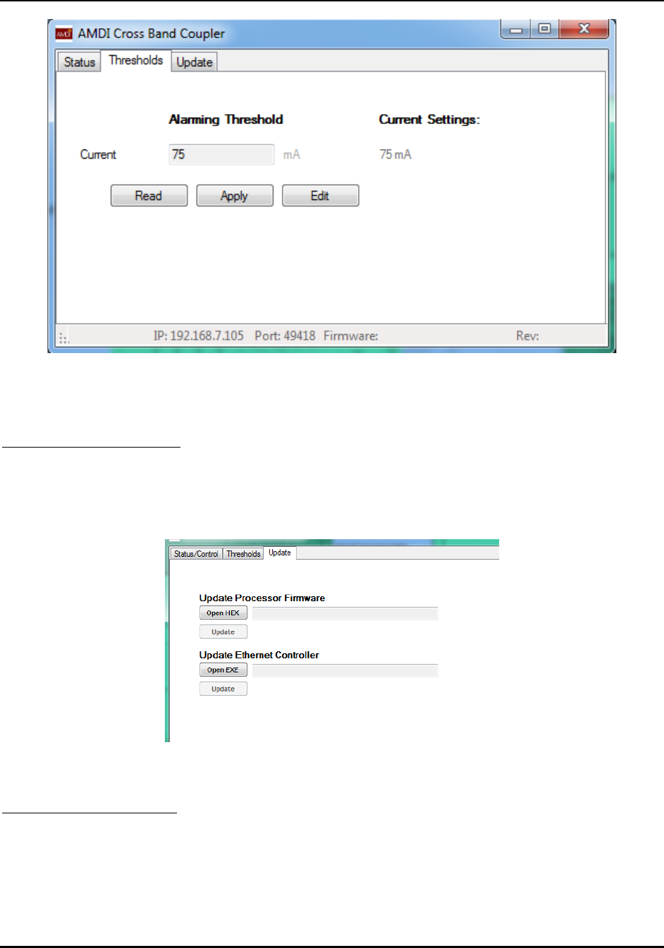 The pushbutton labeled “Update Firmware” is used to write new firmware into the DSP module. It lets