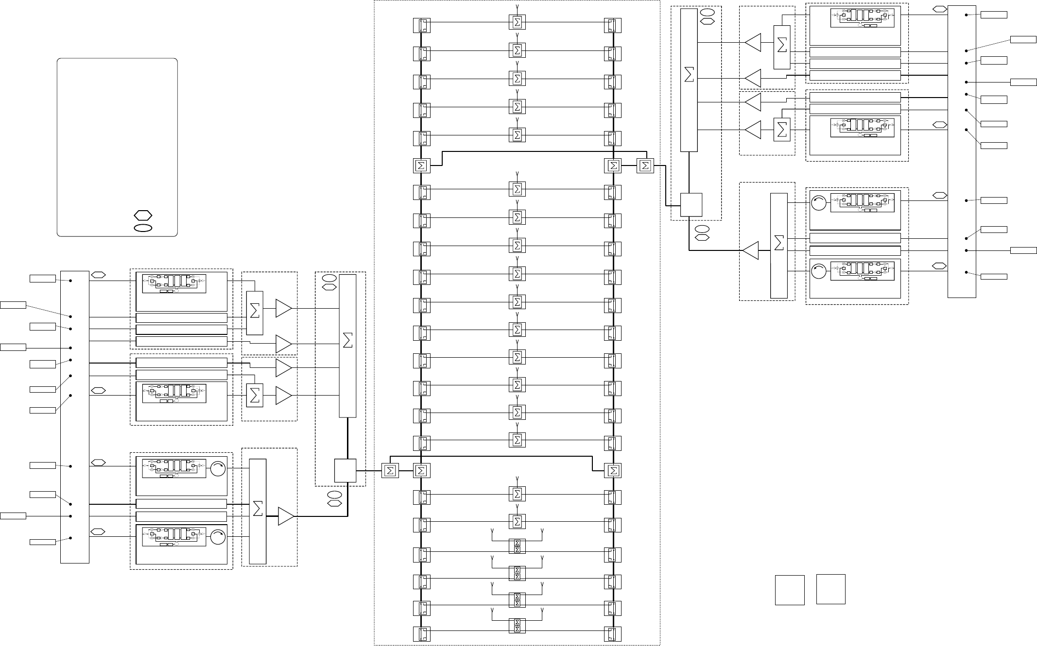 amplified with an LNA (low-noise amplifier) and distributed to the Uplink Channel Cards using a CBC and splitters.