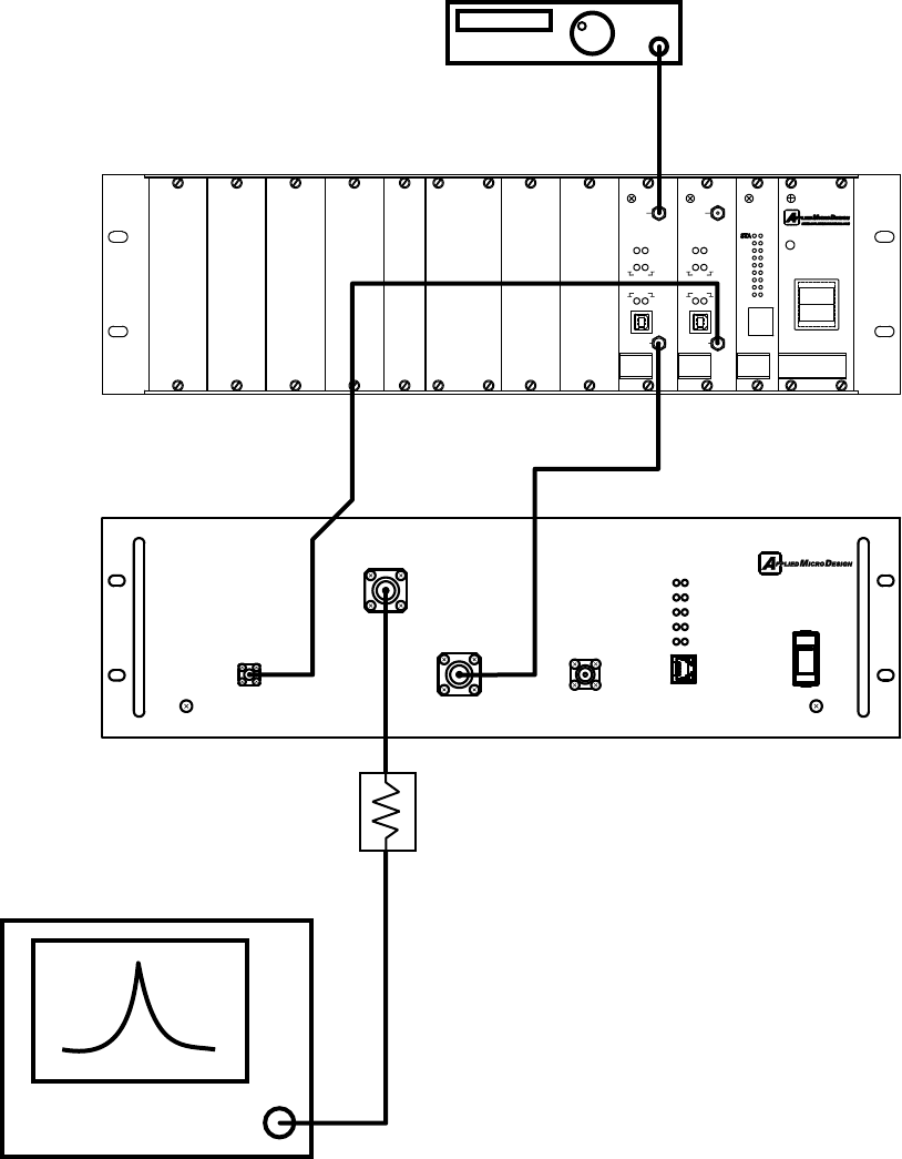 Shown below is a test set-up of the Downlink chain of the Head End. The signal generator is