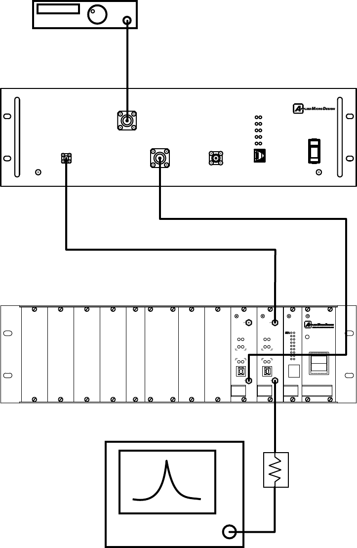 Shown below is a test set-up of the Uplink chain of the Head End. The signal generator is set