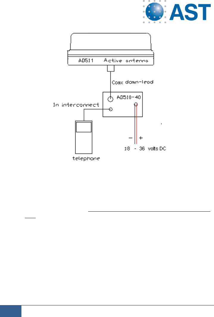 Connection between the telephone and the AD510-40 is made with a coaxial
