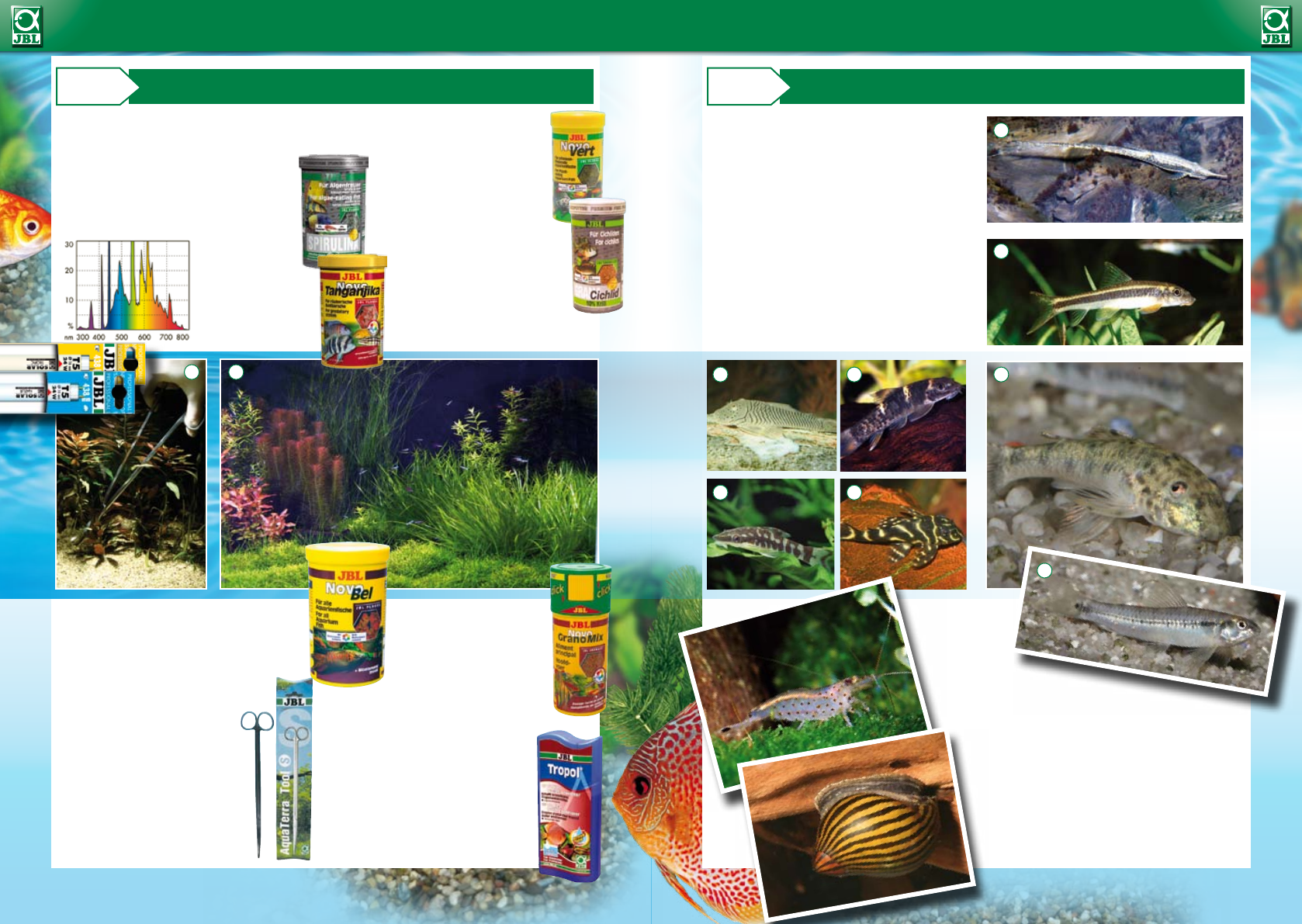 (1), doctor fish (Garra spec.) (2), dwarf sucking cat-