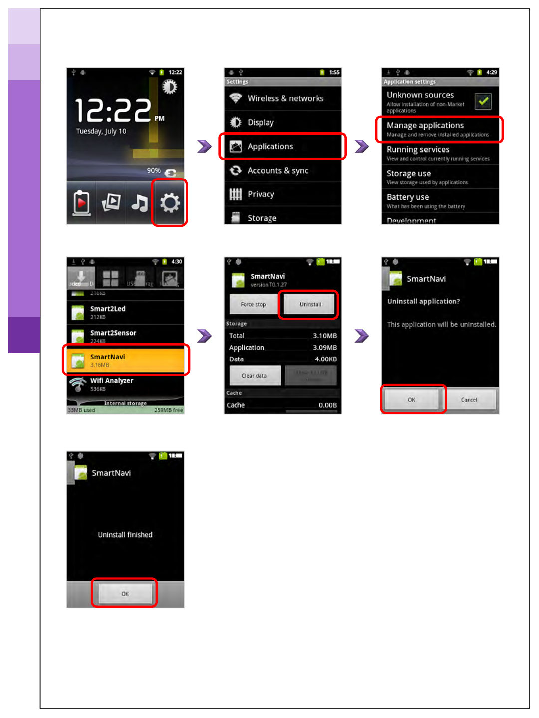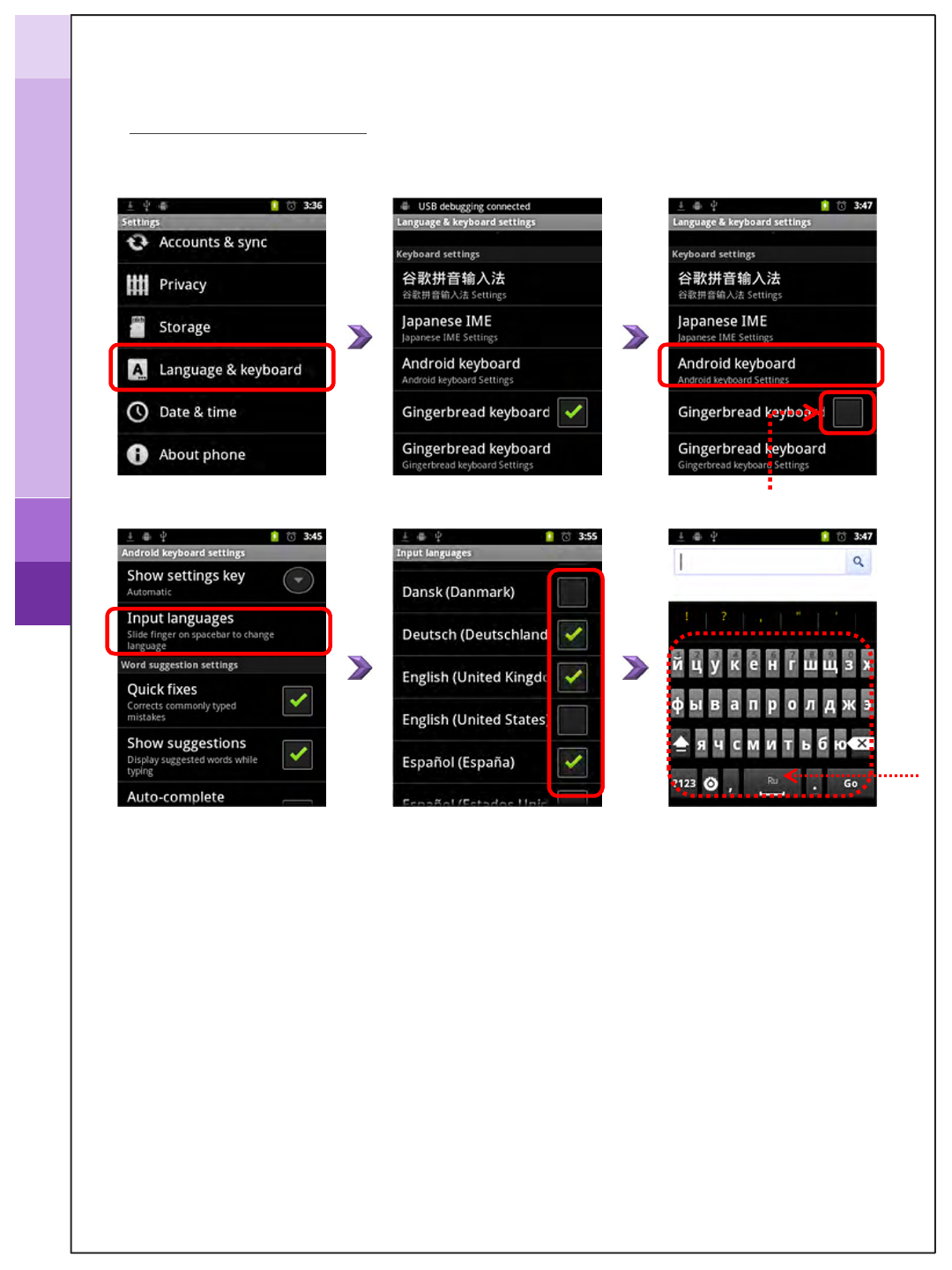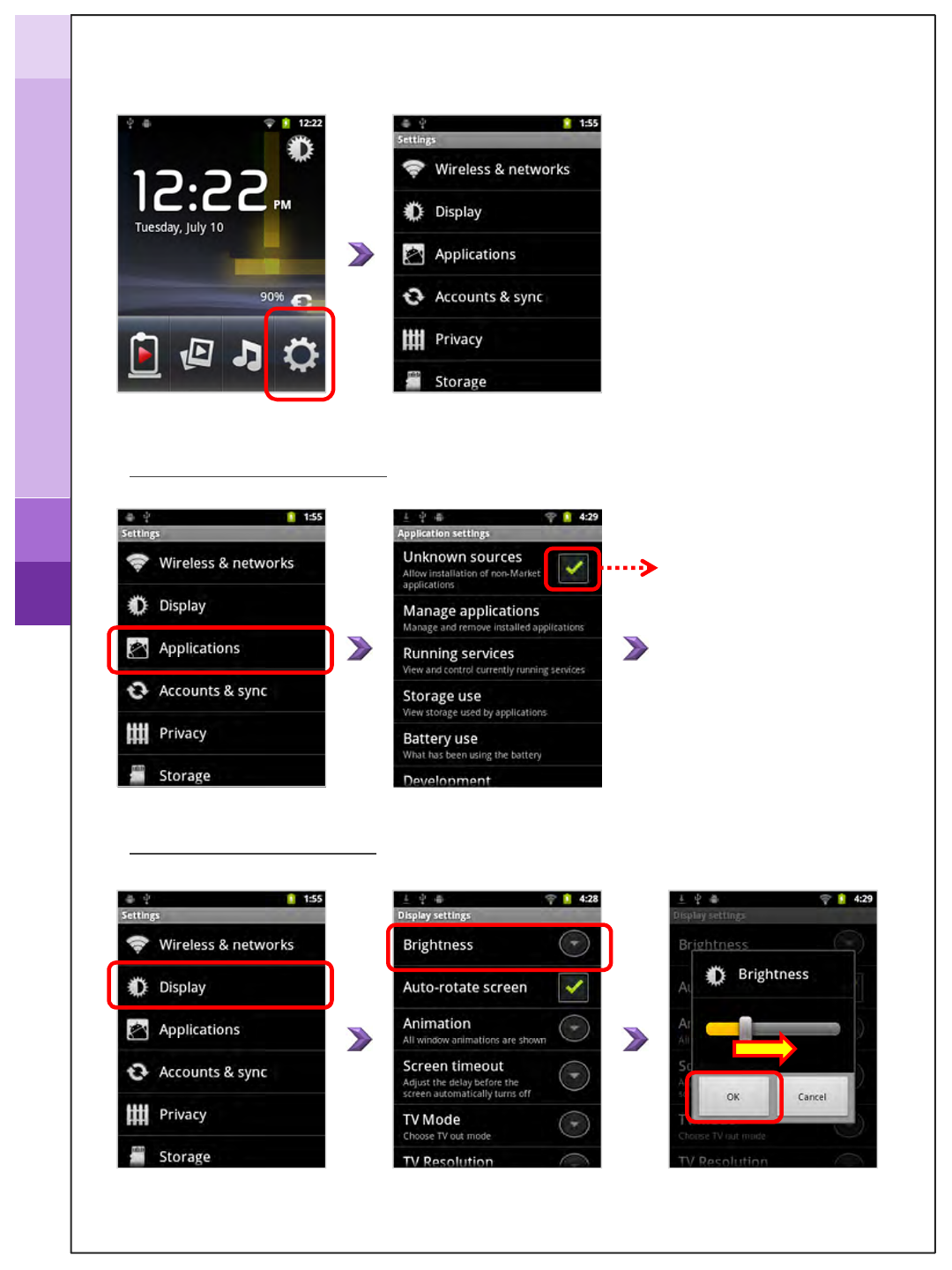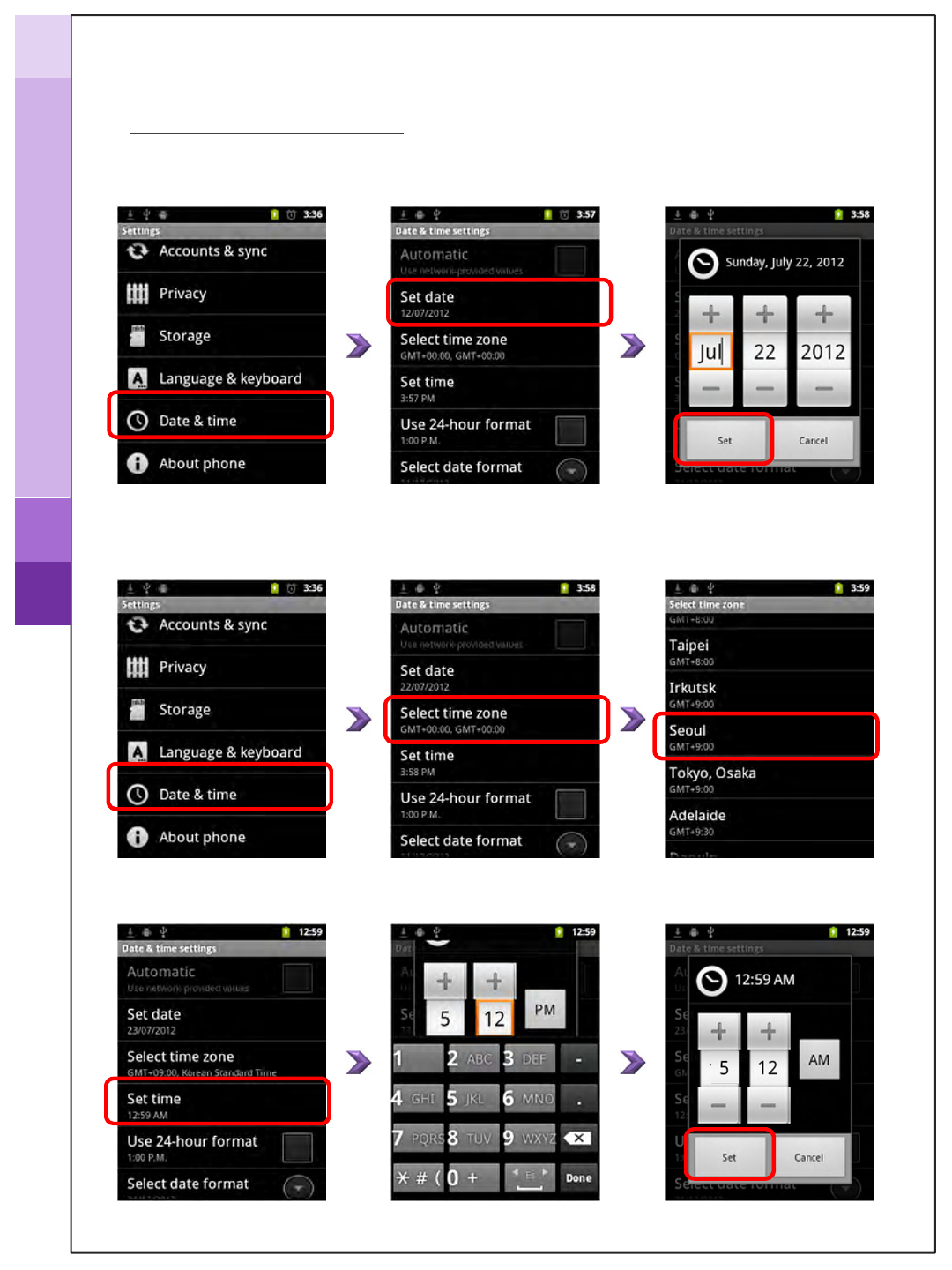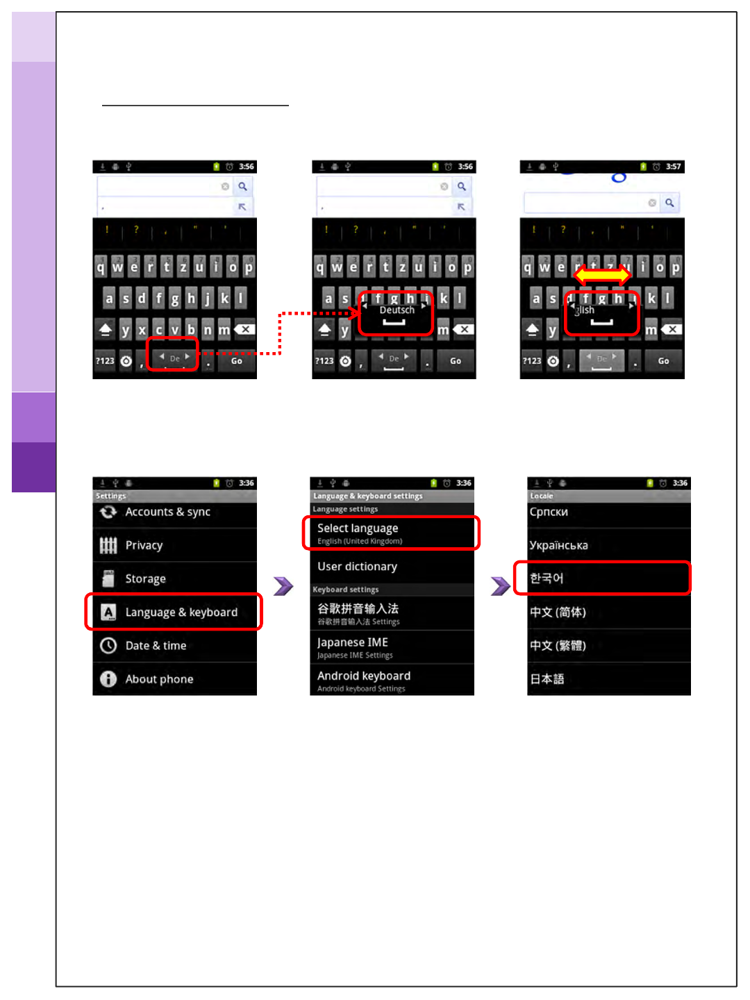 •Drag : Tap and drag your finger up, down, left, or right to move to items on lists.