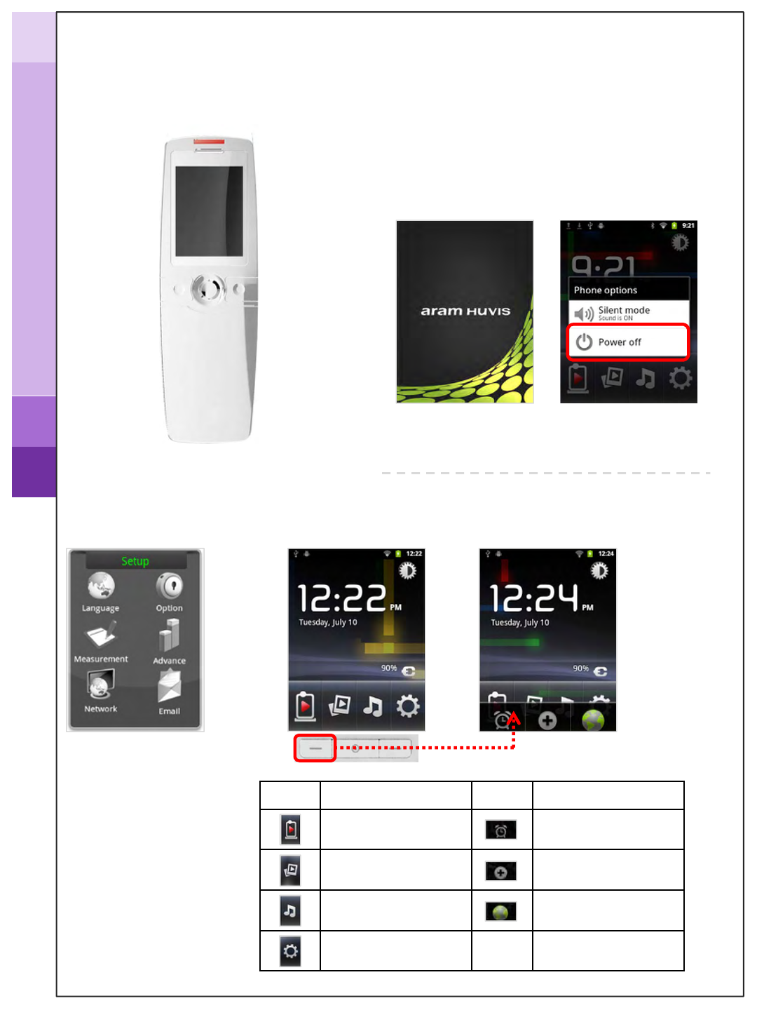 •The device has a power save function that turns the screen OFF after 1 minute. Press