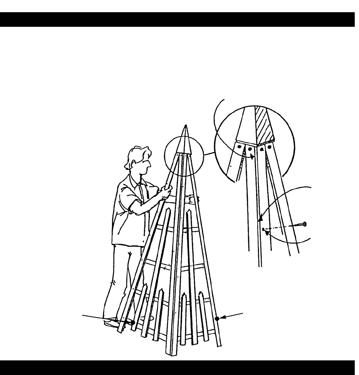 Stand the first frame, with pyramid cap attached, onto its base. Place a second frame, with cross-members inward, on its