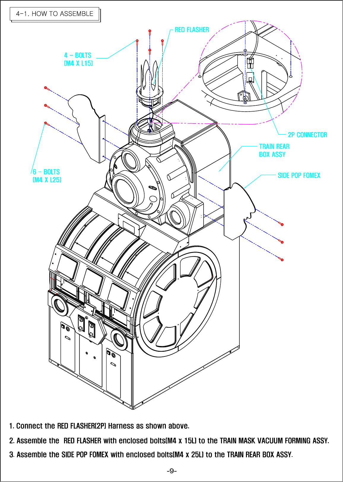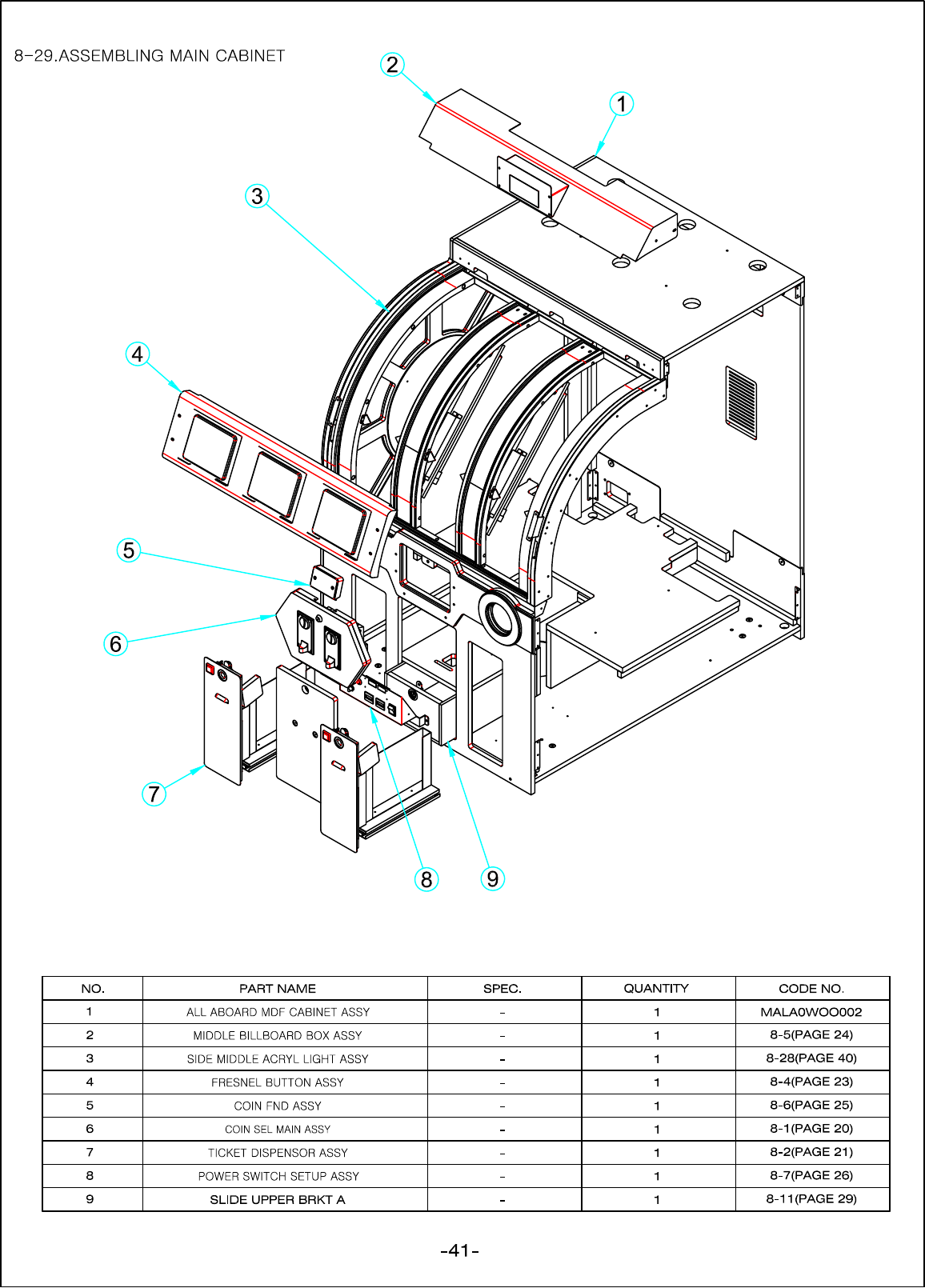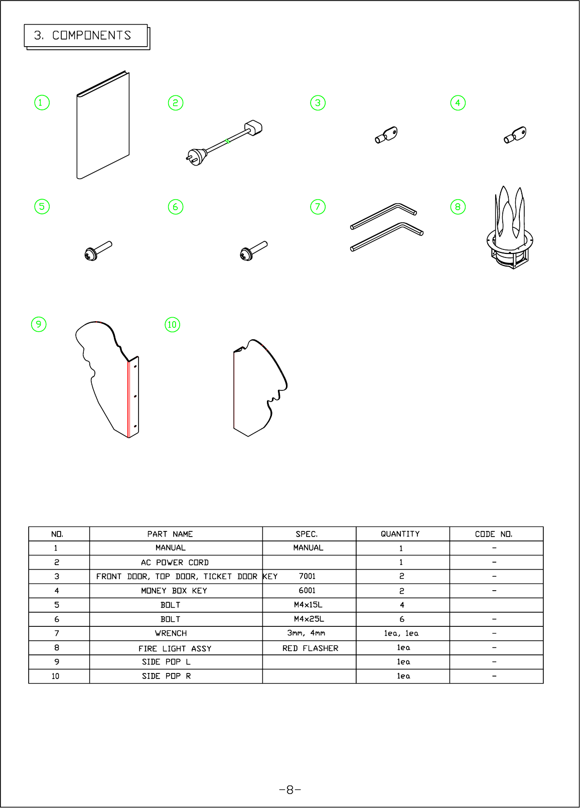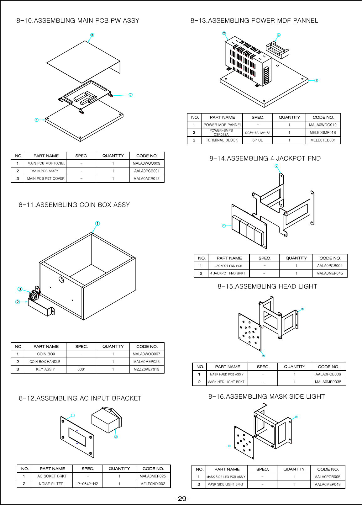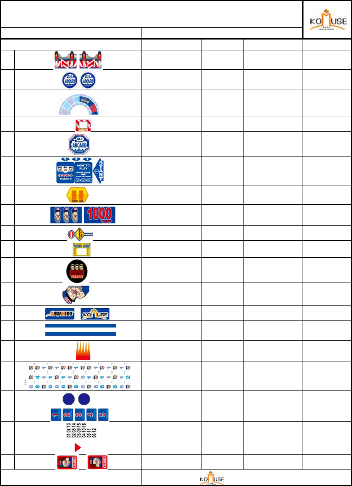 A service staff shall have experience in operations of game machines. The staff shall be responsible for assembly,