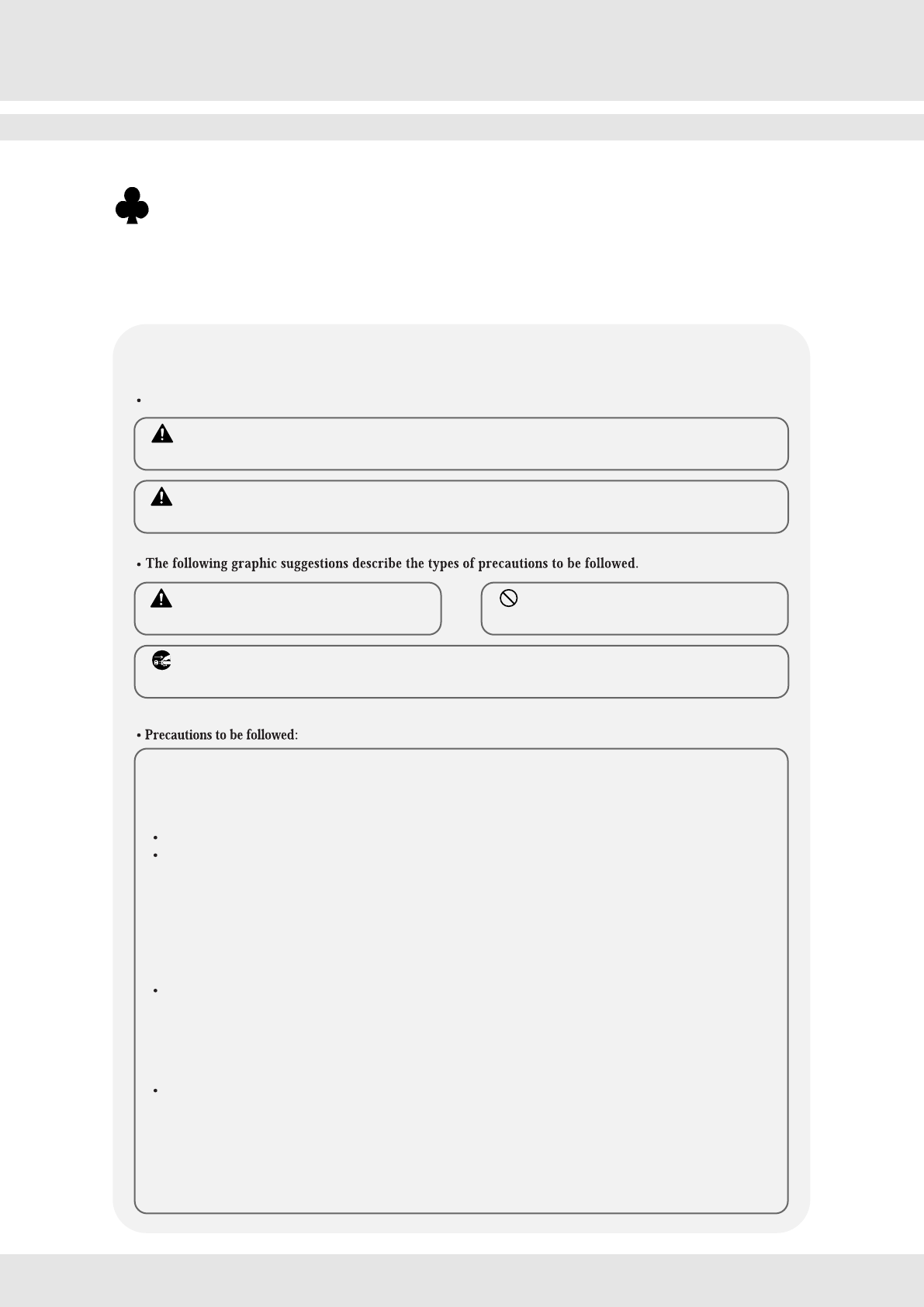 The following safety precautions are given throughout this manual. They must be strictly followed to protect those