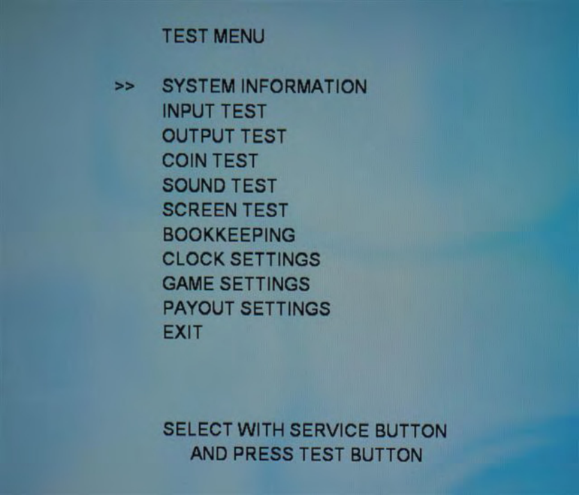 Service button : Choose test item.