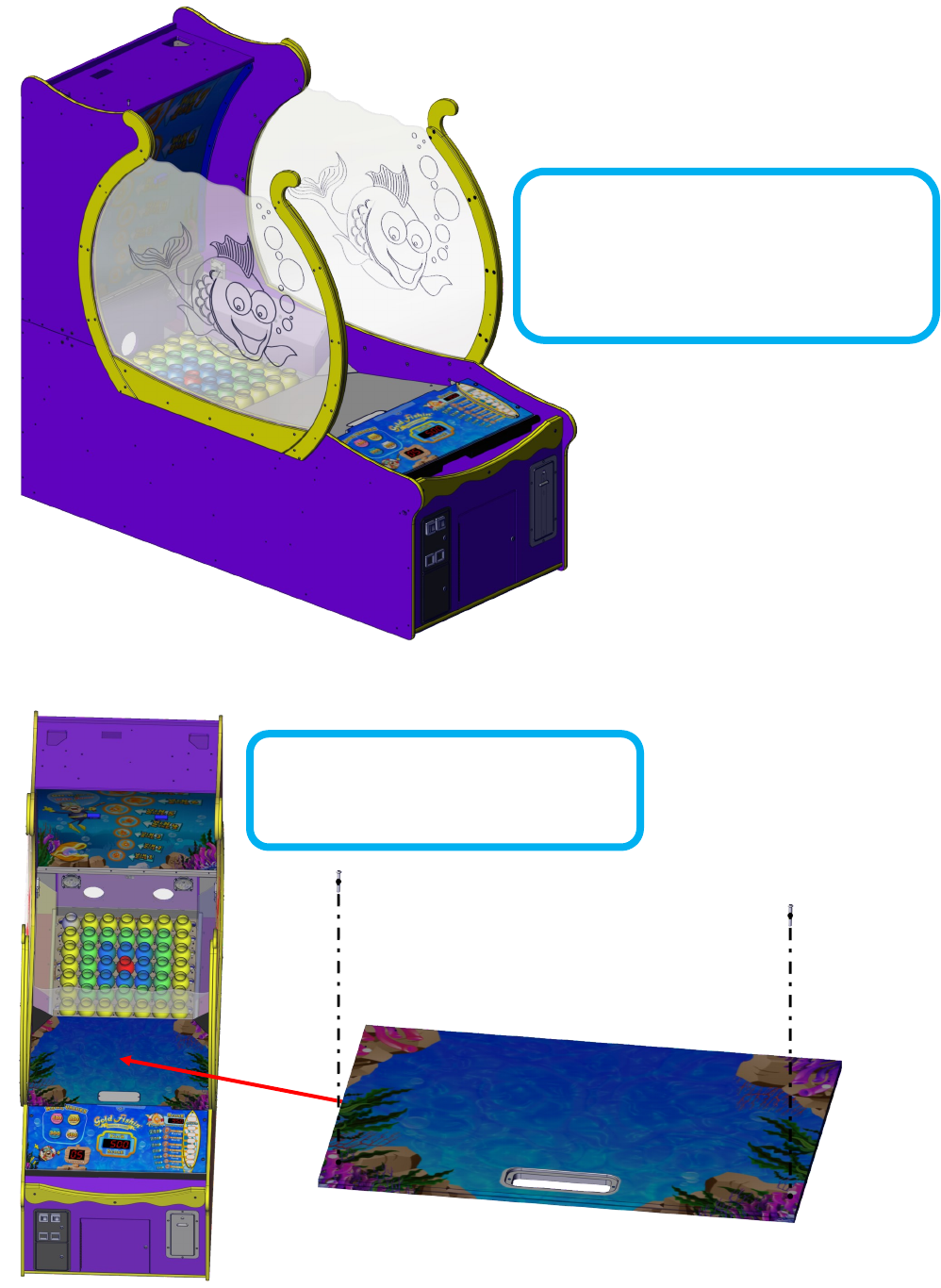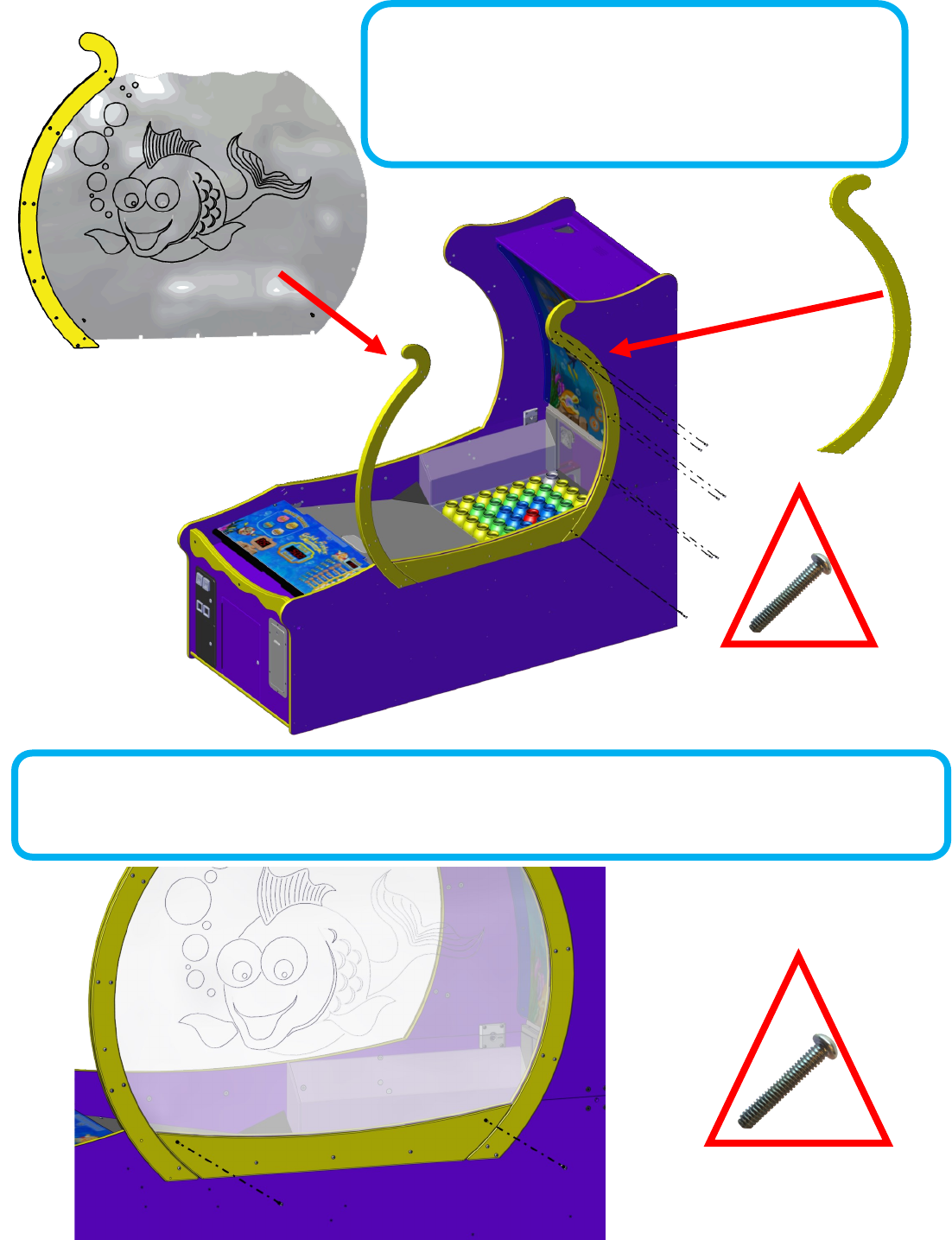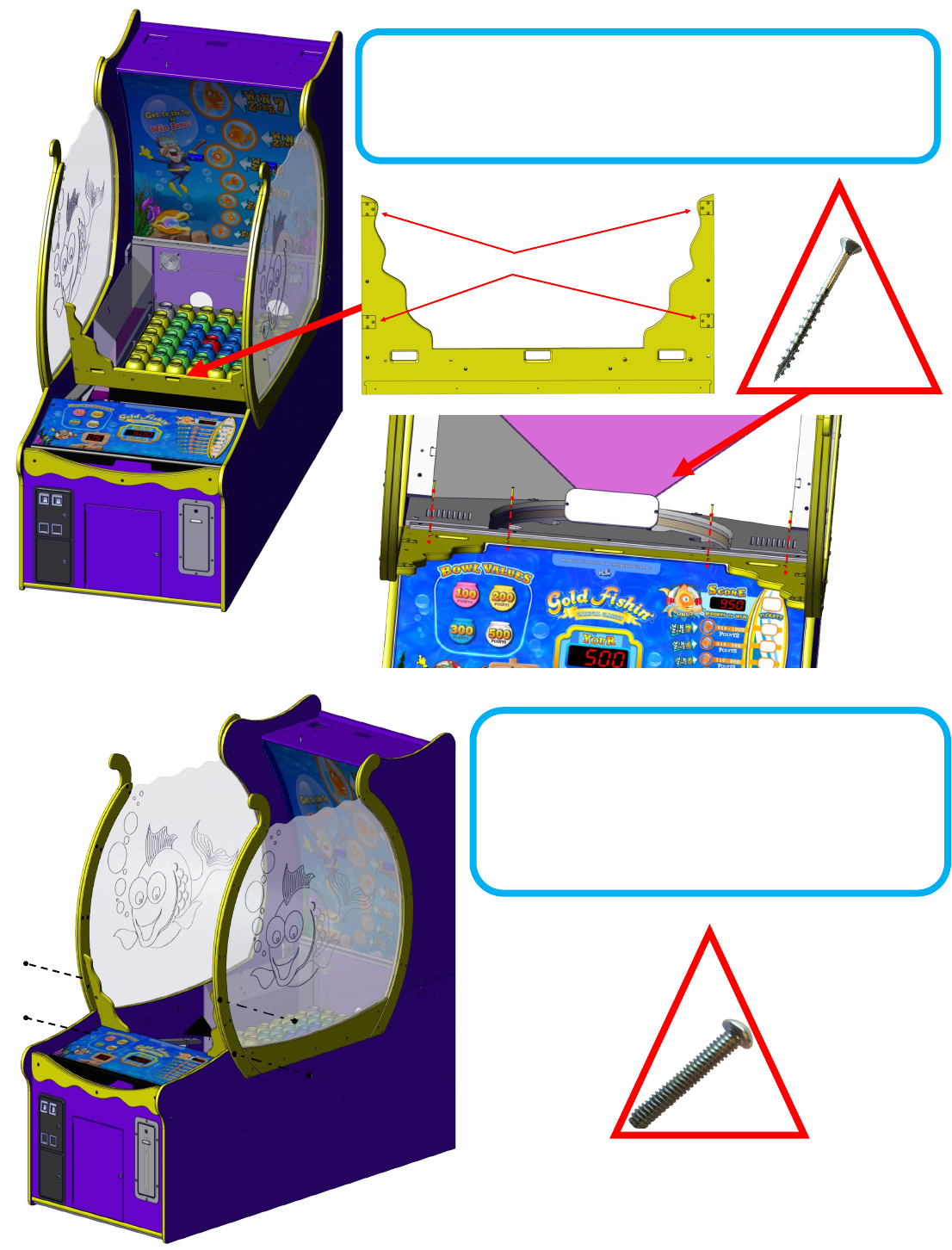 the game was shipped. Assembled games need only the marquee installed so you can skip to step 15. If