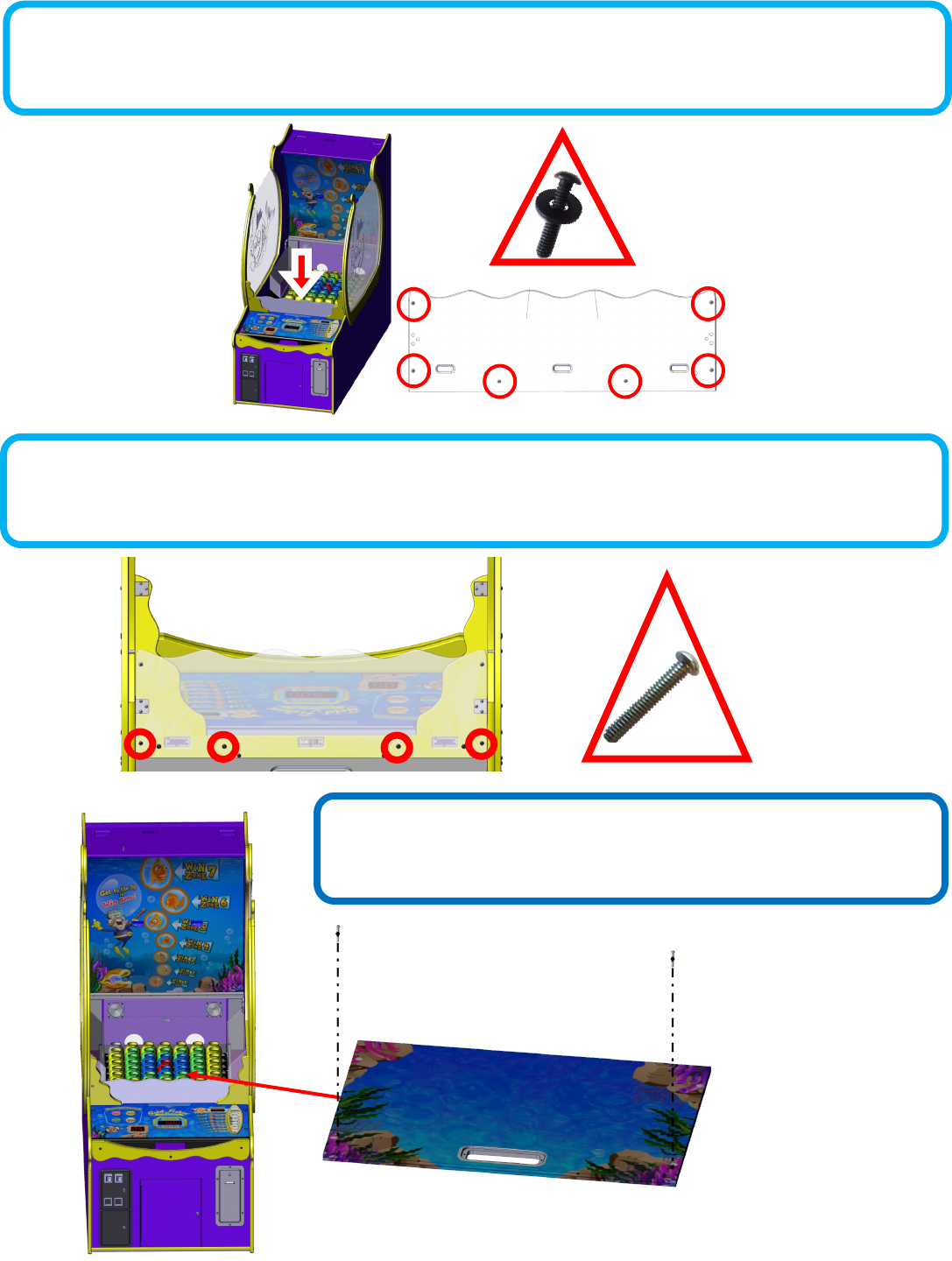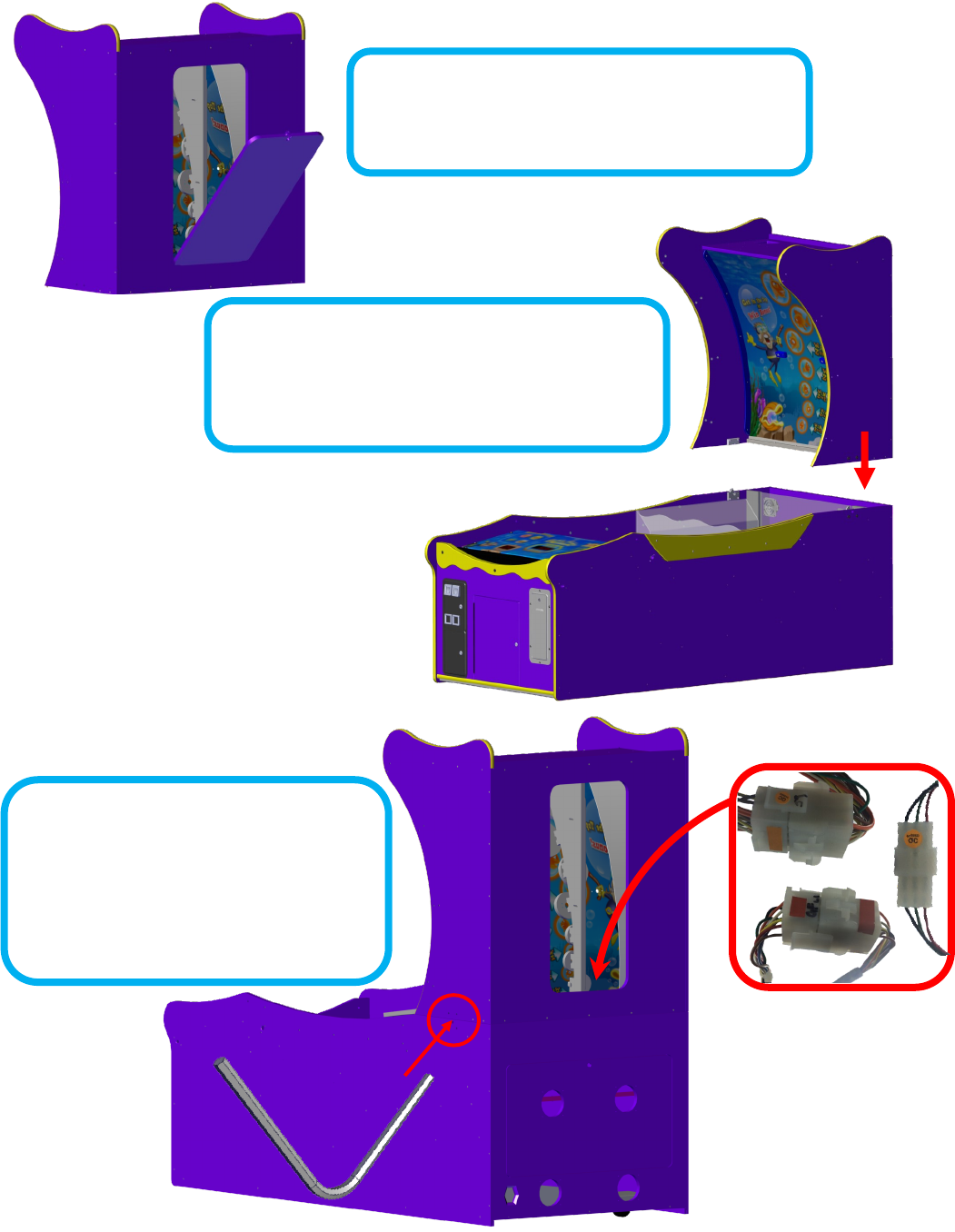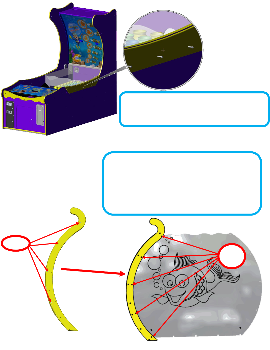 the game was shipped. Assembled games need only the marquee installed so you can skip to step 15. If