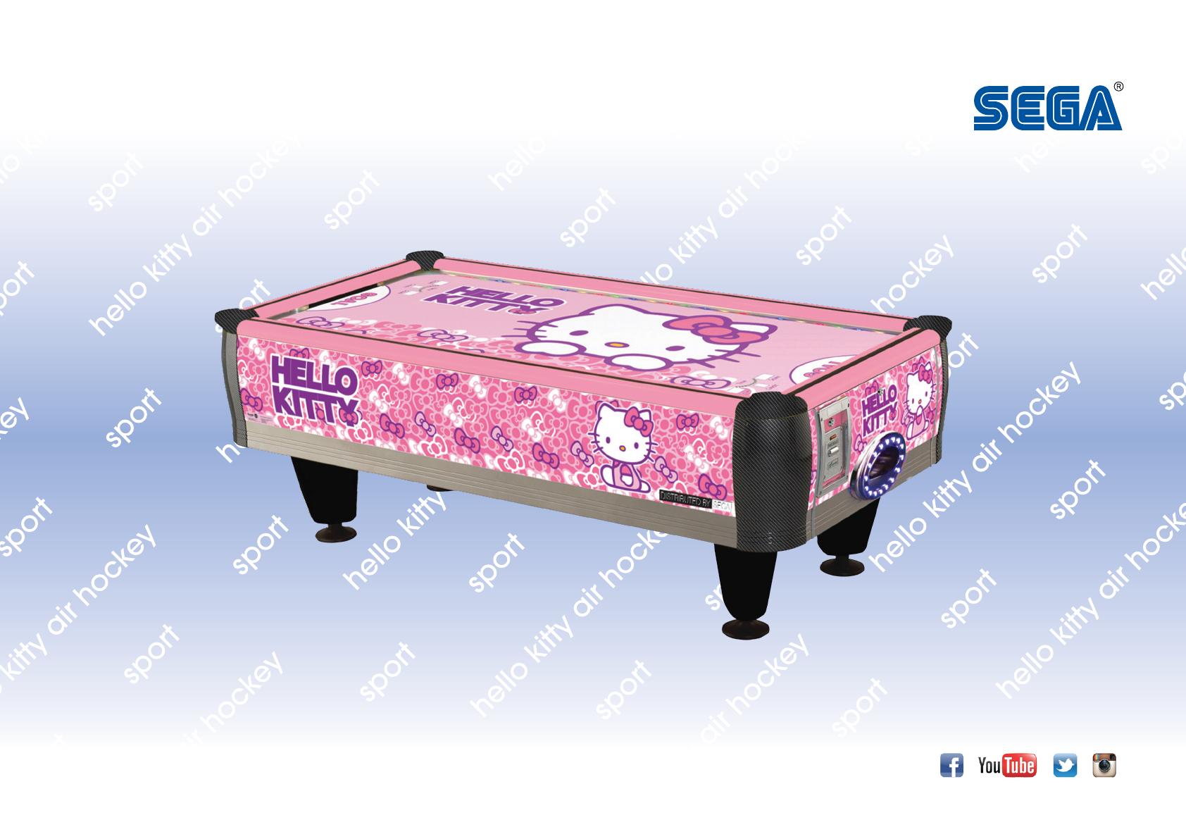 2 player | Ticket redemption | Kiddie size | Hello Kitty branding | LED scoring and timer on play field | Scratch resistance play field