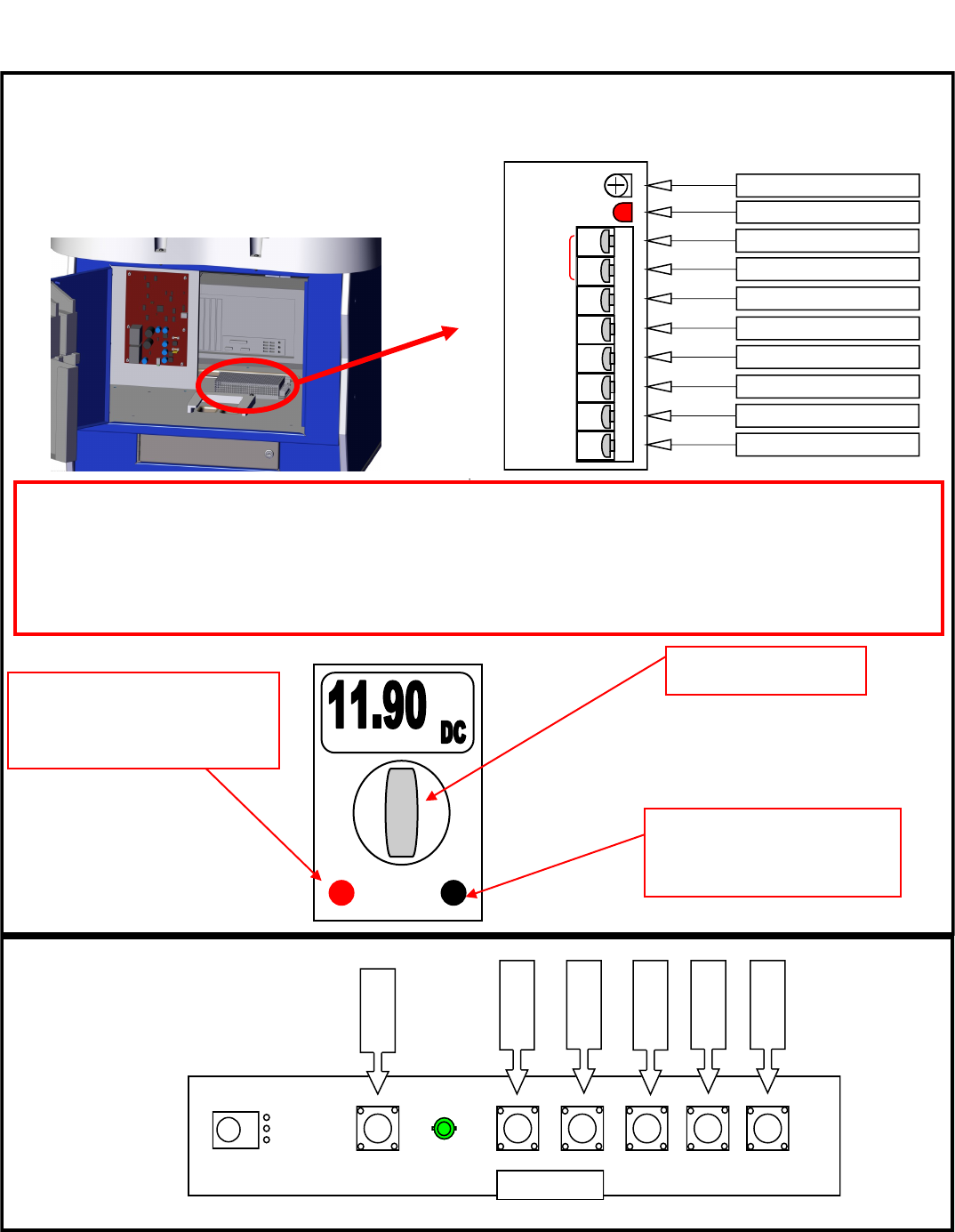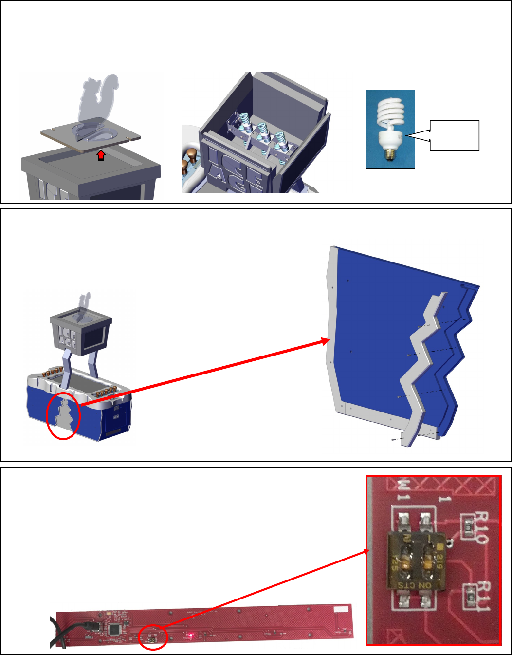 to the game’s electronics, coin mechanisms, and setup control buttons.