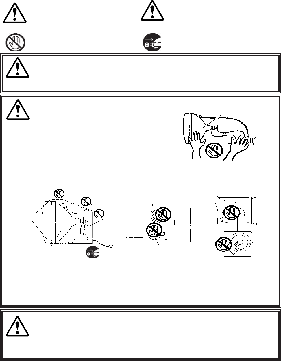 Some of the monitor (TV) parts are subject to high tension voltage. Even after running off power, some