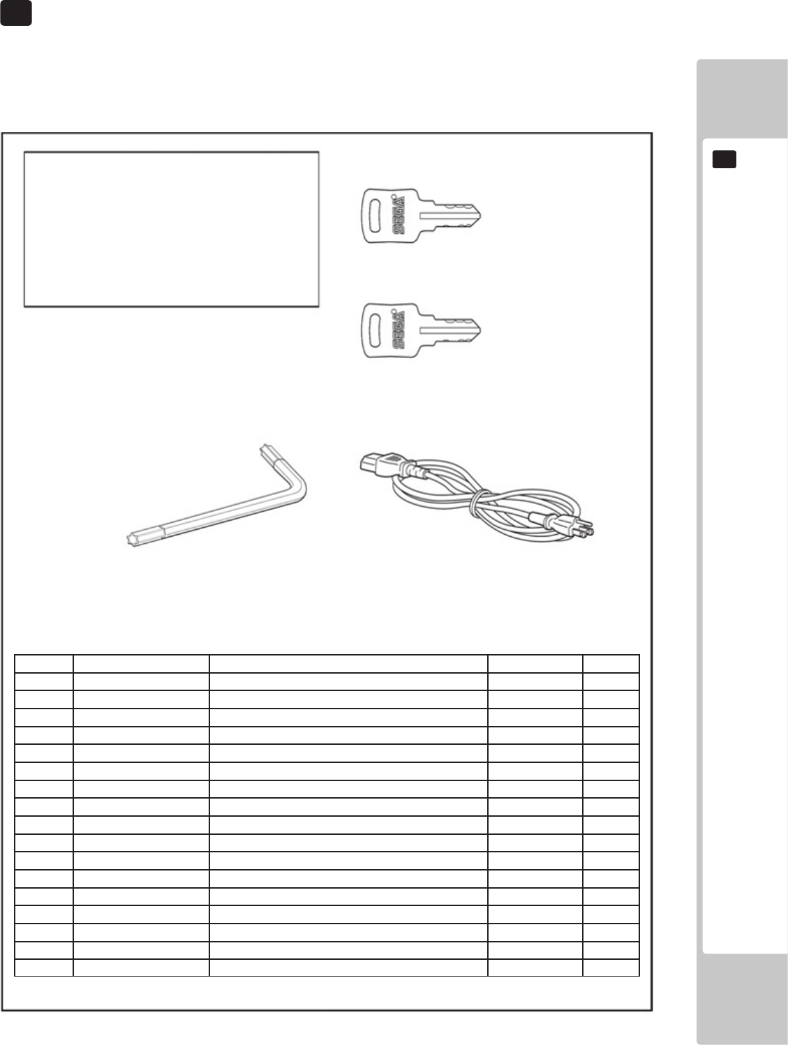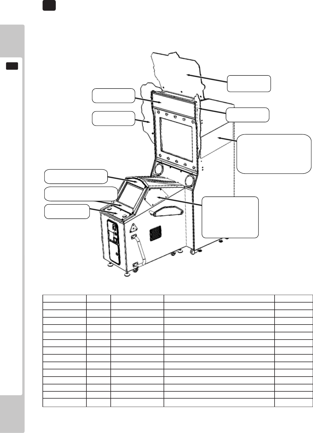 No. Component Part Description Quantity