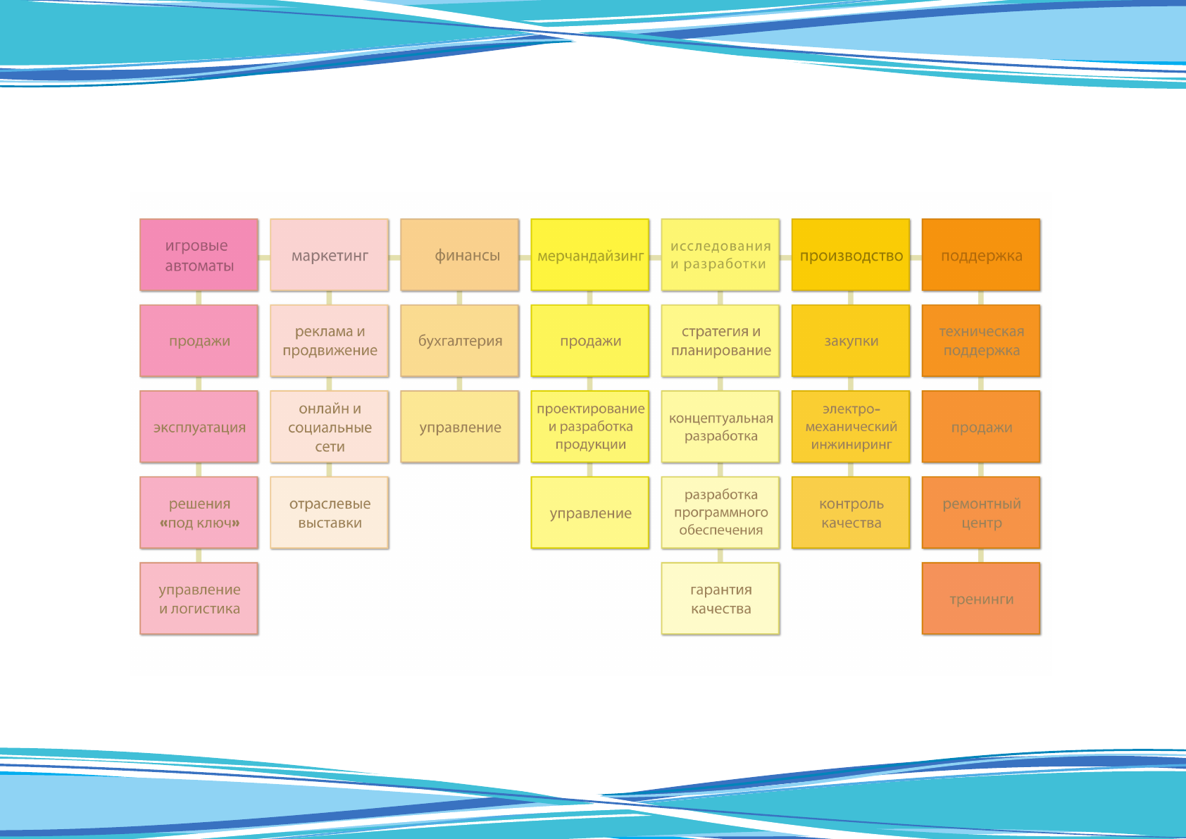 игровых автоматов, мерчандайзинг, запчасти и расходные материалы. Группы формируются из профессионалов