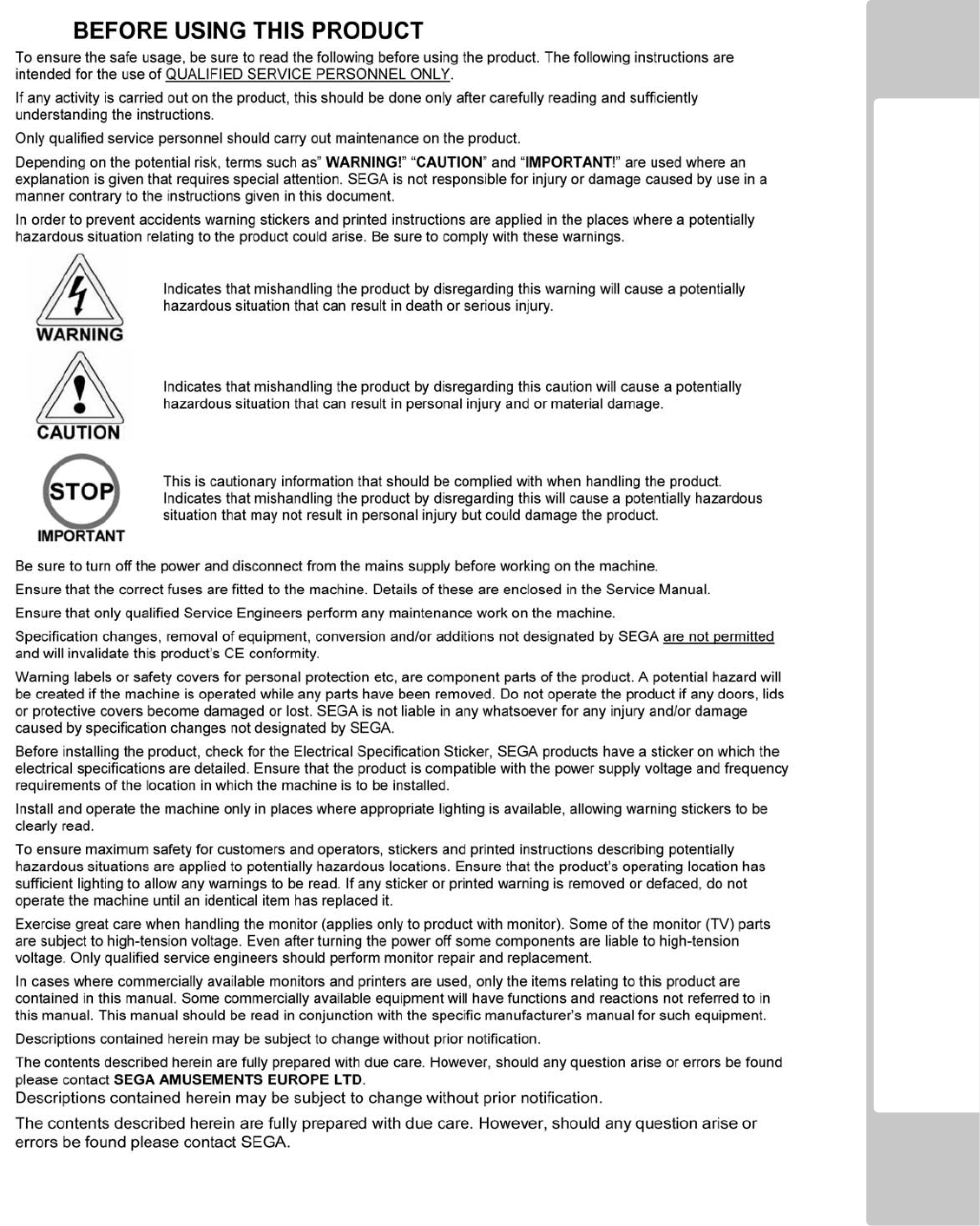 User Manual: Arcade Sega Rally 3 Twin Manual