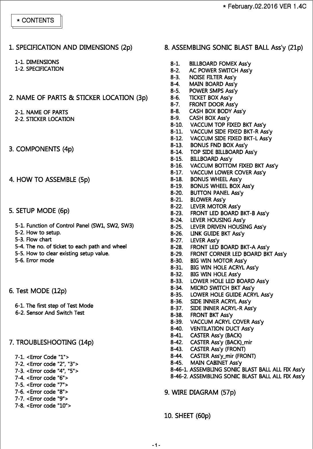 Arcade Sonic Blast Ball Manual Ver.1.4C Uk COVER SBB User