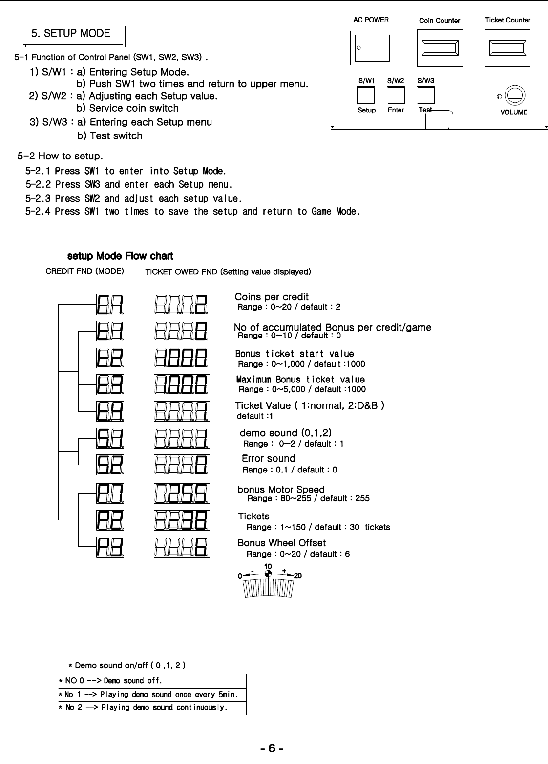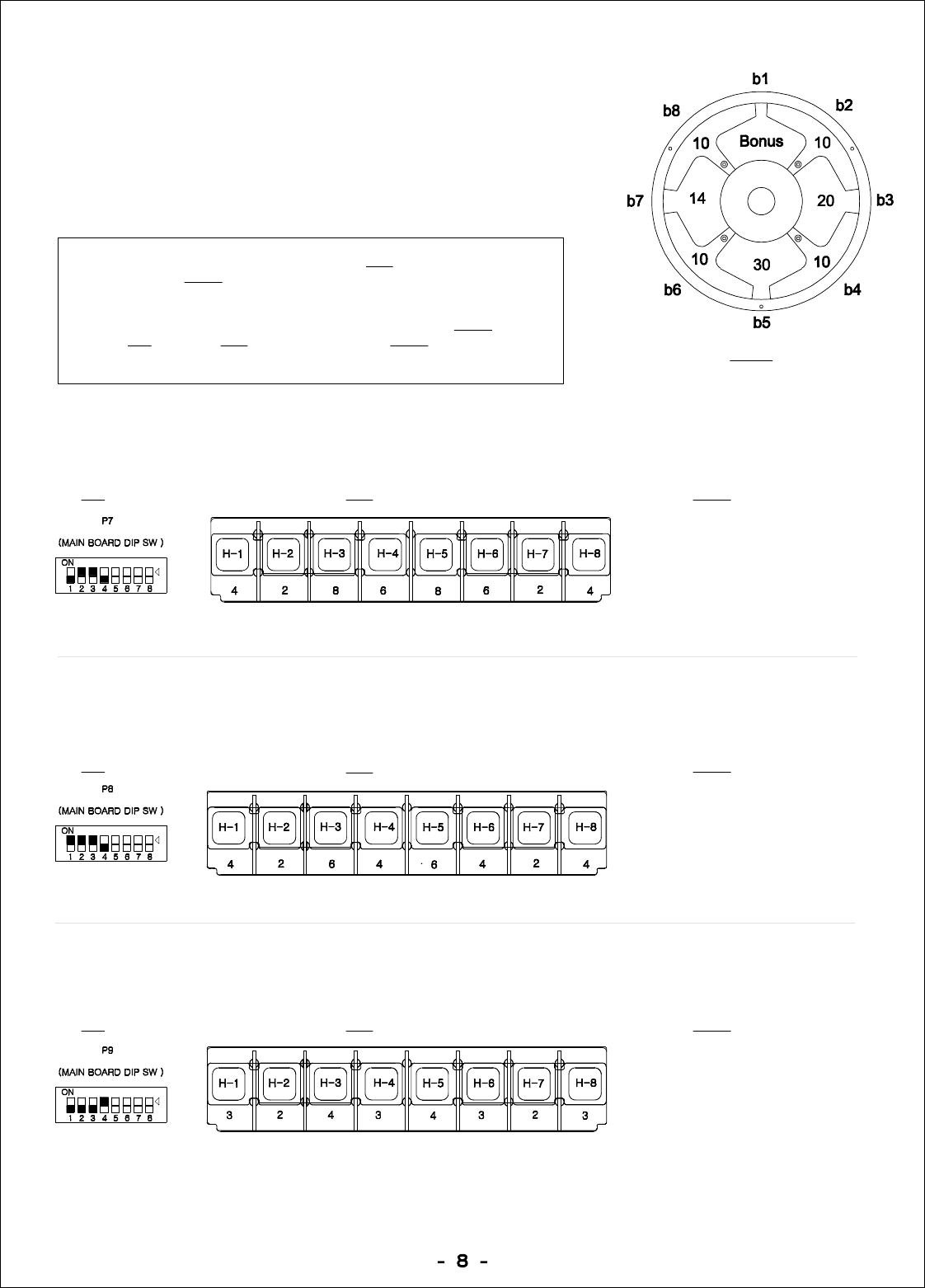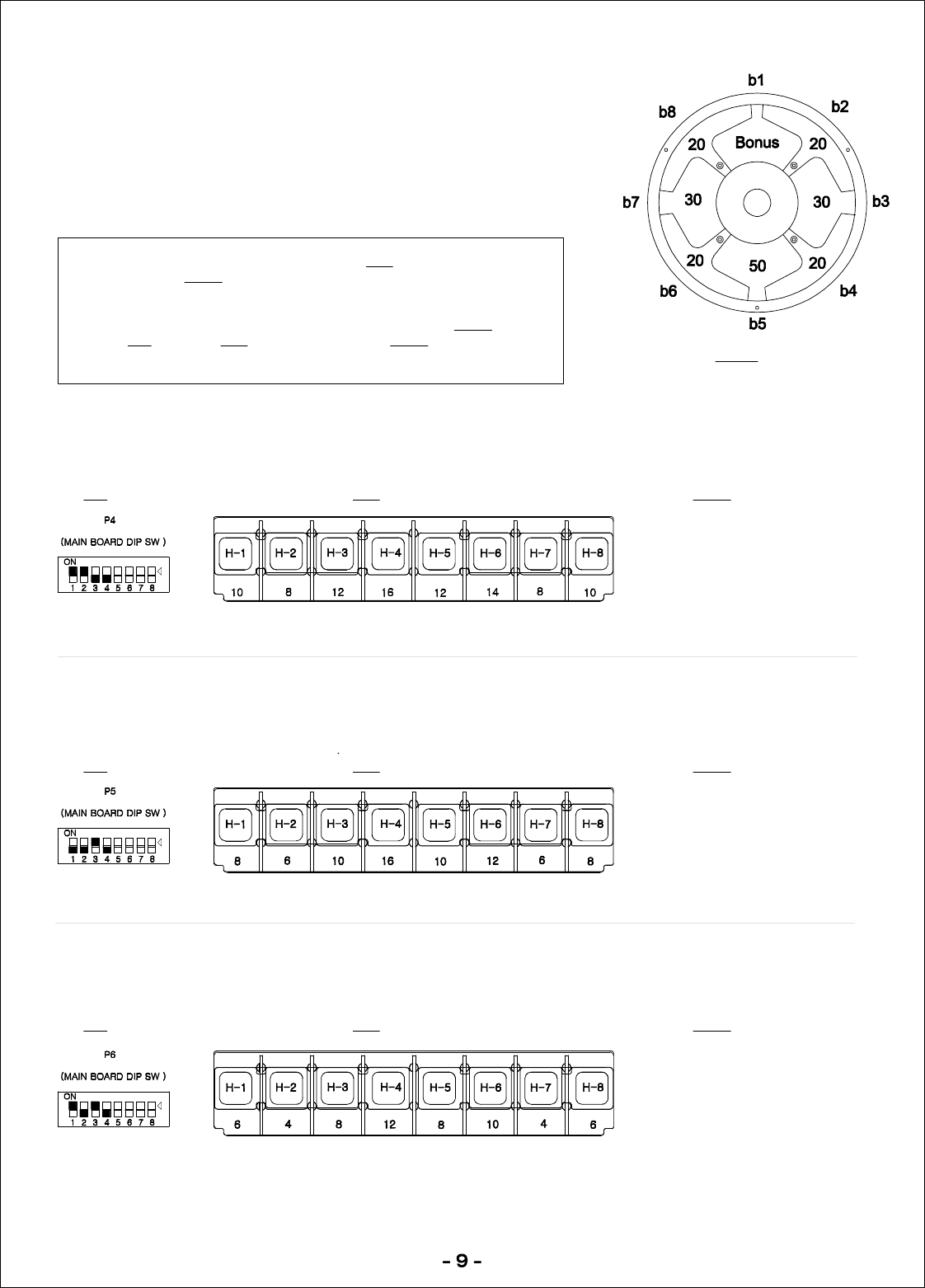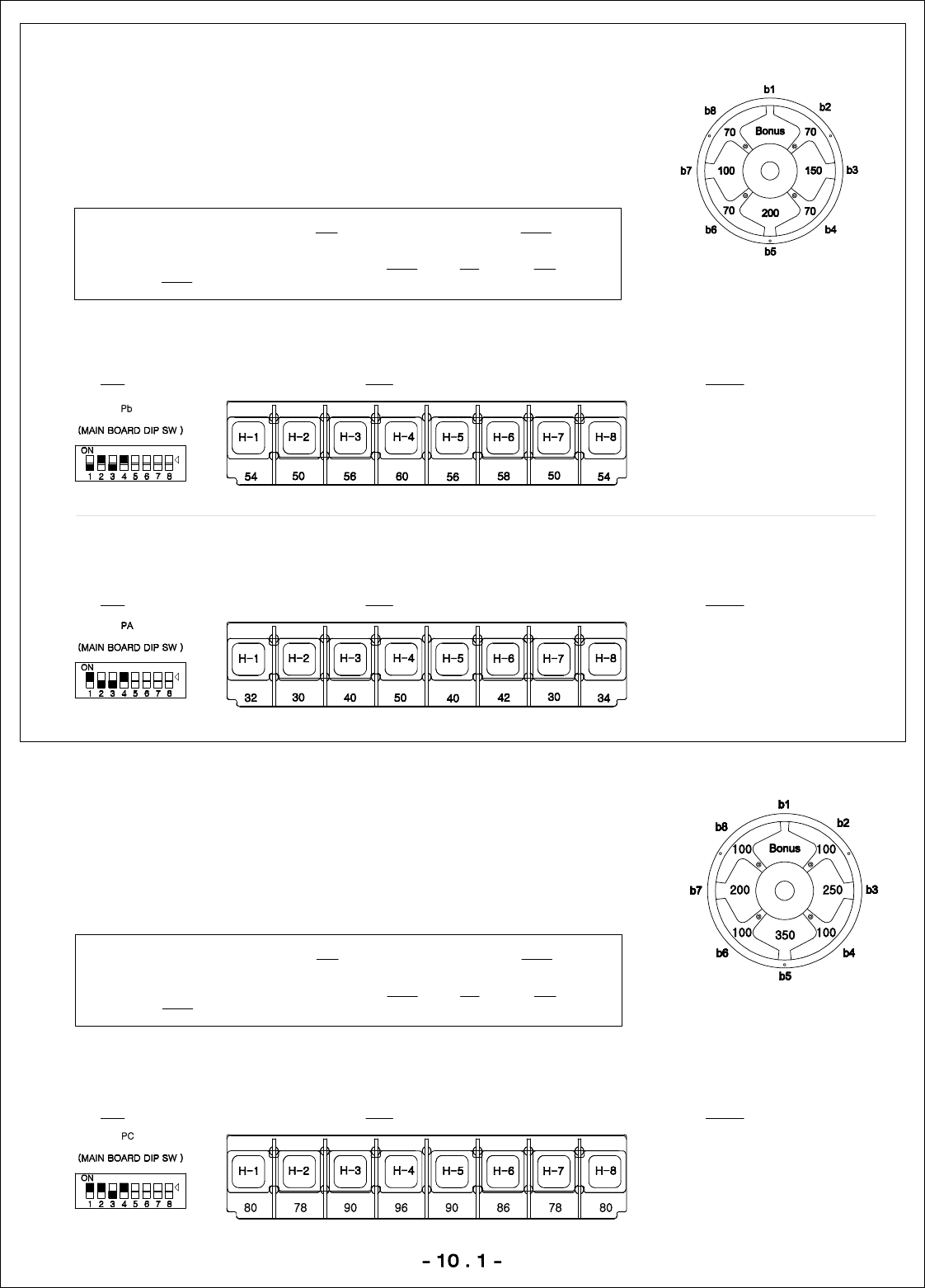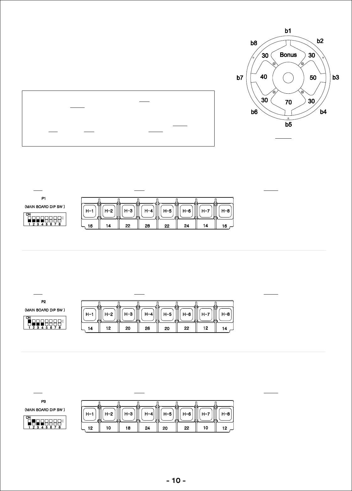 Set lower playfield ‘hole’ values to:Set DIP switch to: Set ‘bonus’ to maximum of: