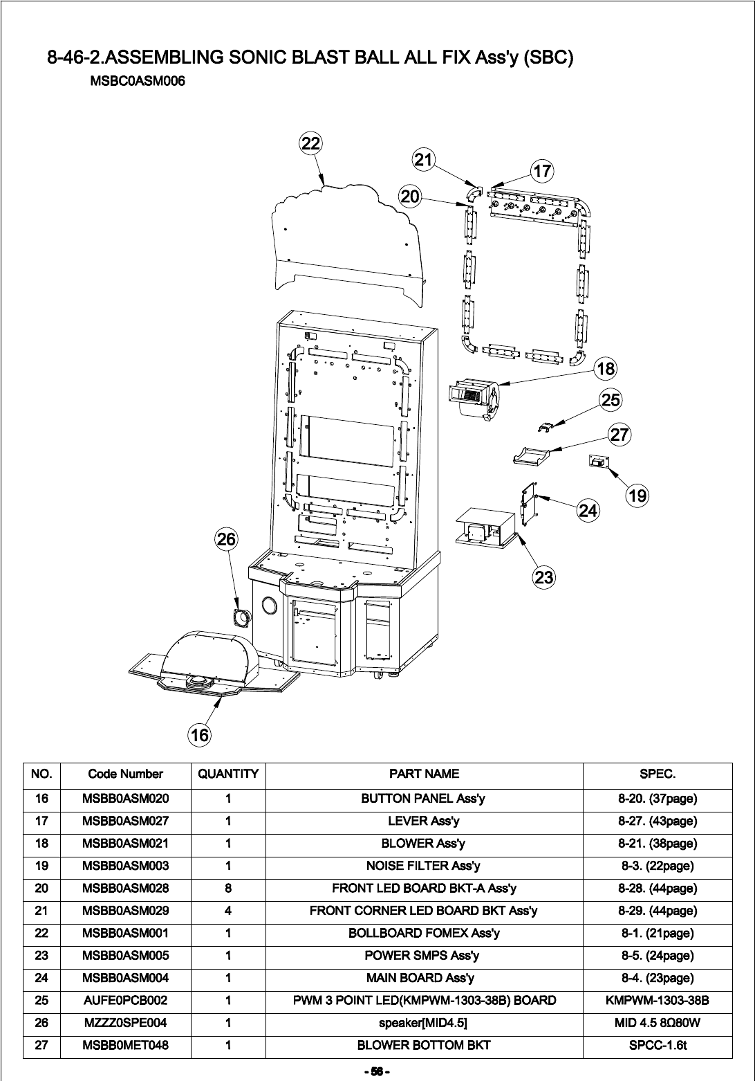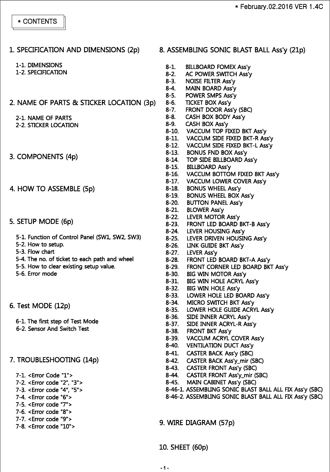 Arcade Sonic Blast Ball Manual Ver.1.4C Usa COVER SBC User