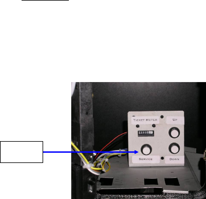 The Service Menu buttons are located behind the top coin door. Press the “Service” button to enter the Service