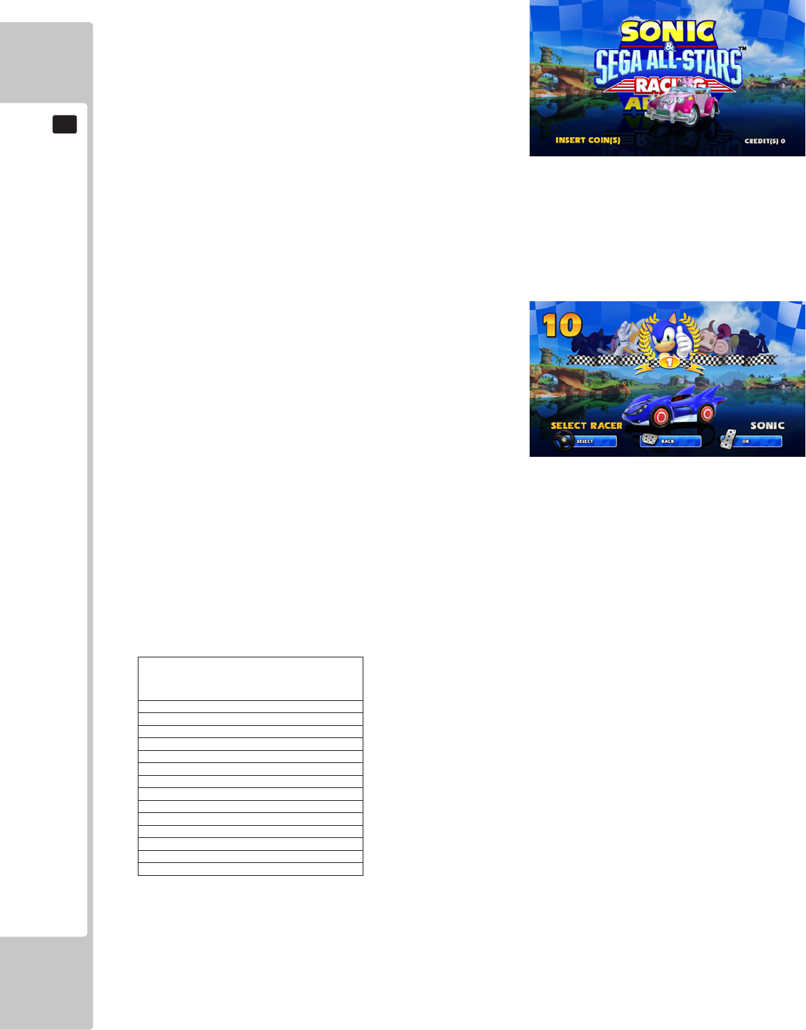 OWNER'S MANUALSONIC AND SEGA ALL-STARS RACING ARCADE 420-0012UK