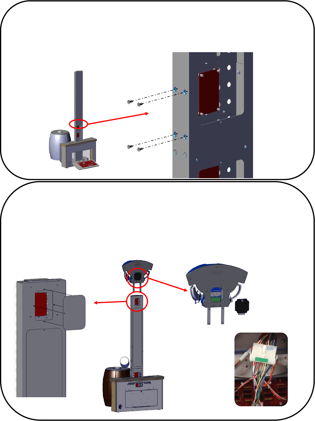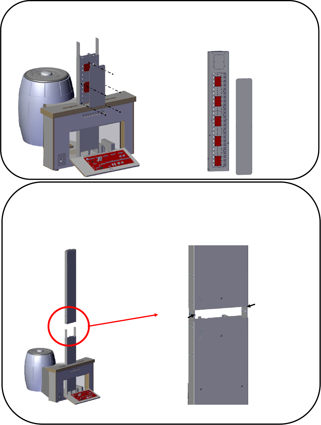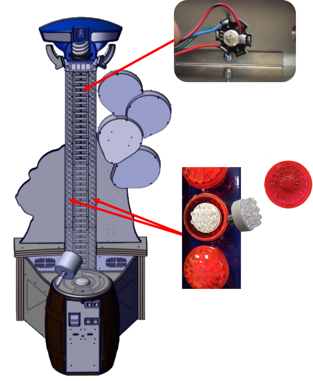 Remove the upper access panel on the score tower. Before liing the bonus marquee up to the top,