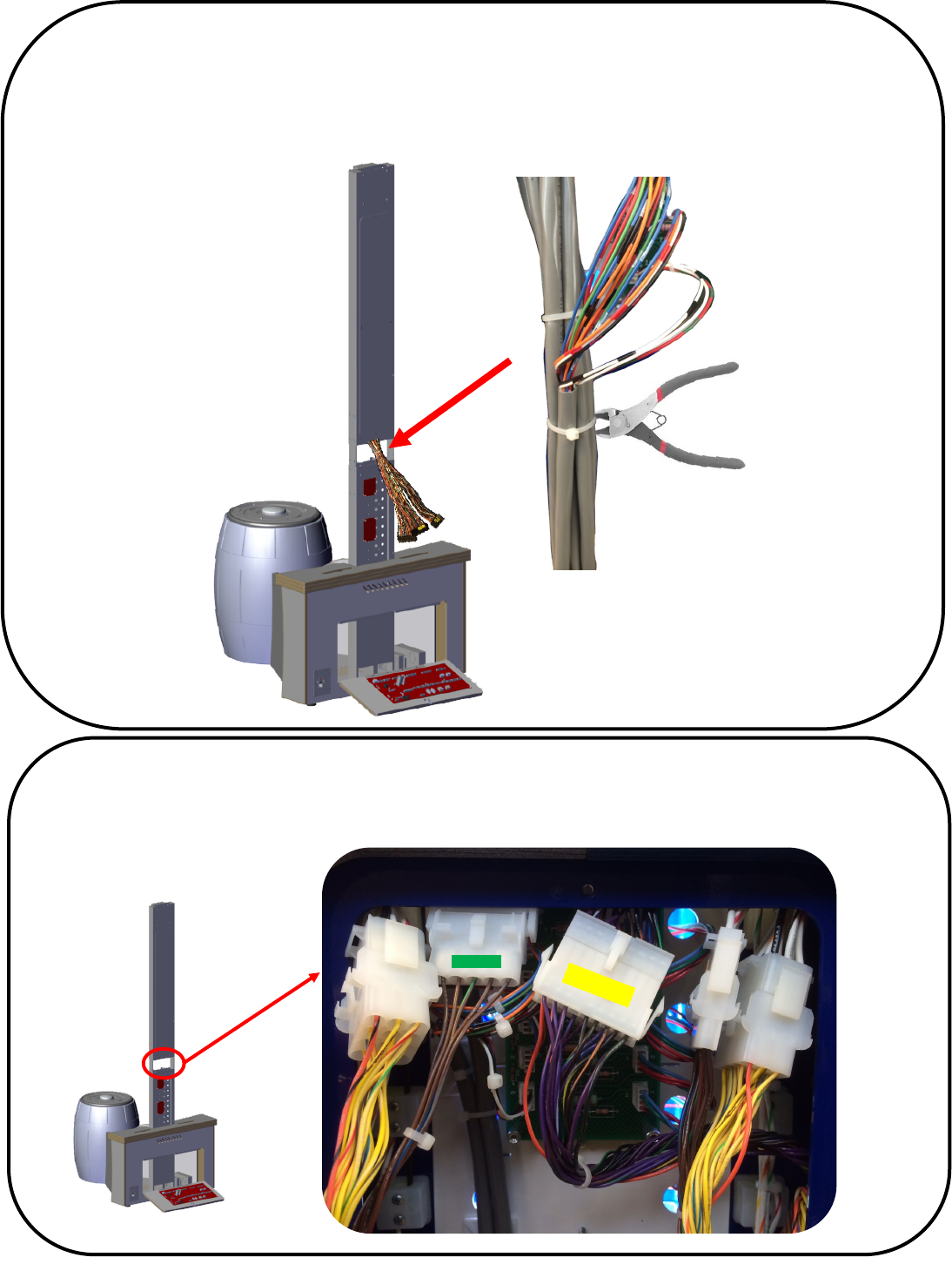 Connect the ve harnesses shown below that connects the middle secon to the base secon. They are