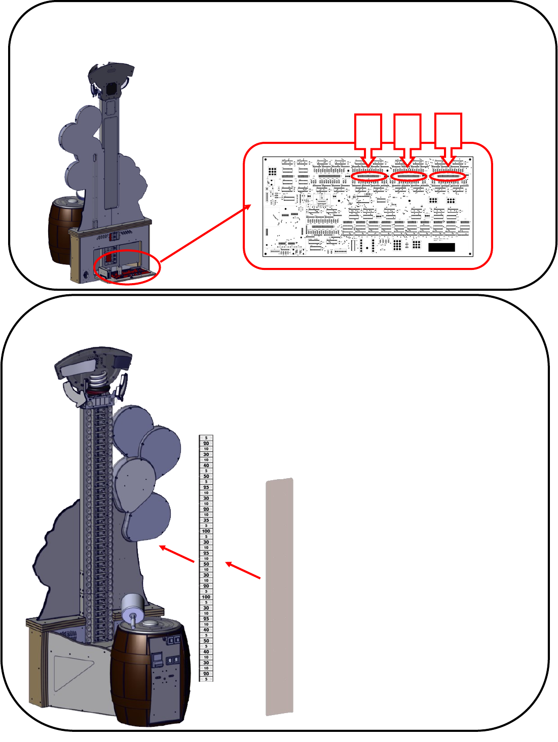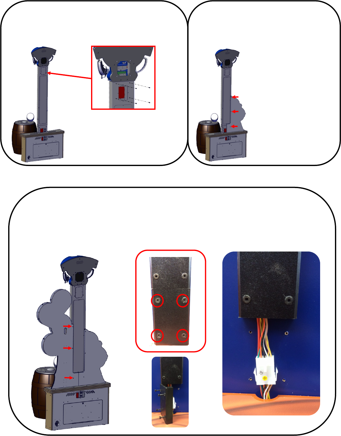 From the back of the game install the right side balloon. Before liing onto the cabinet, remove the