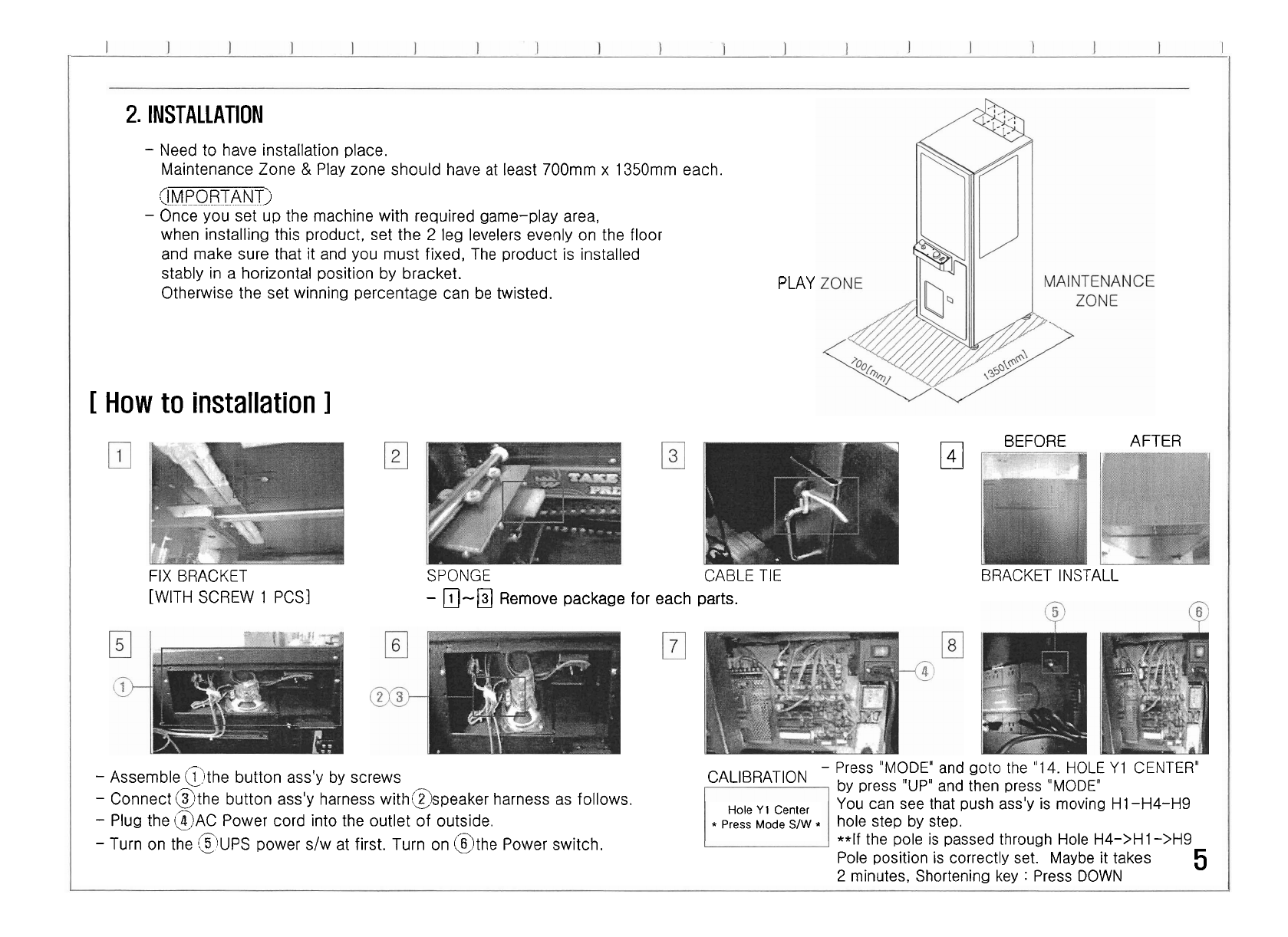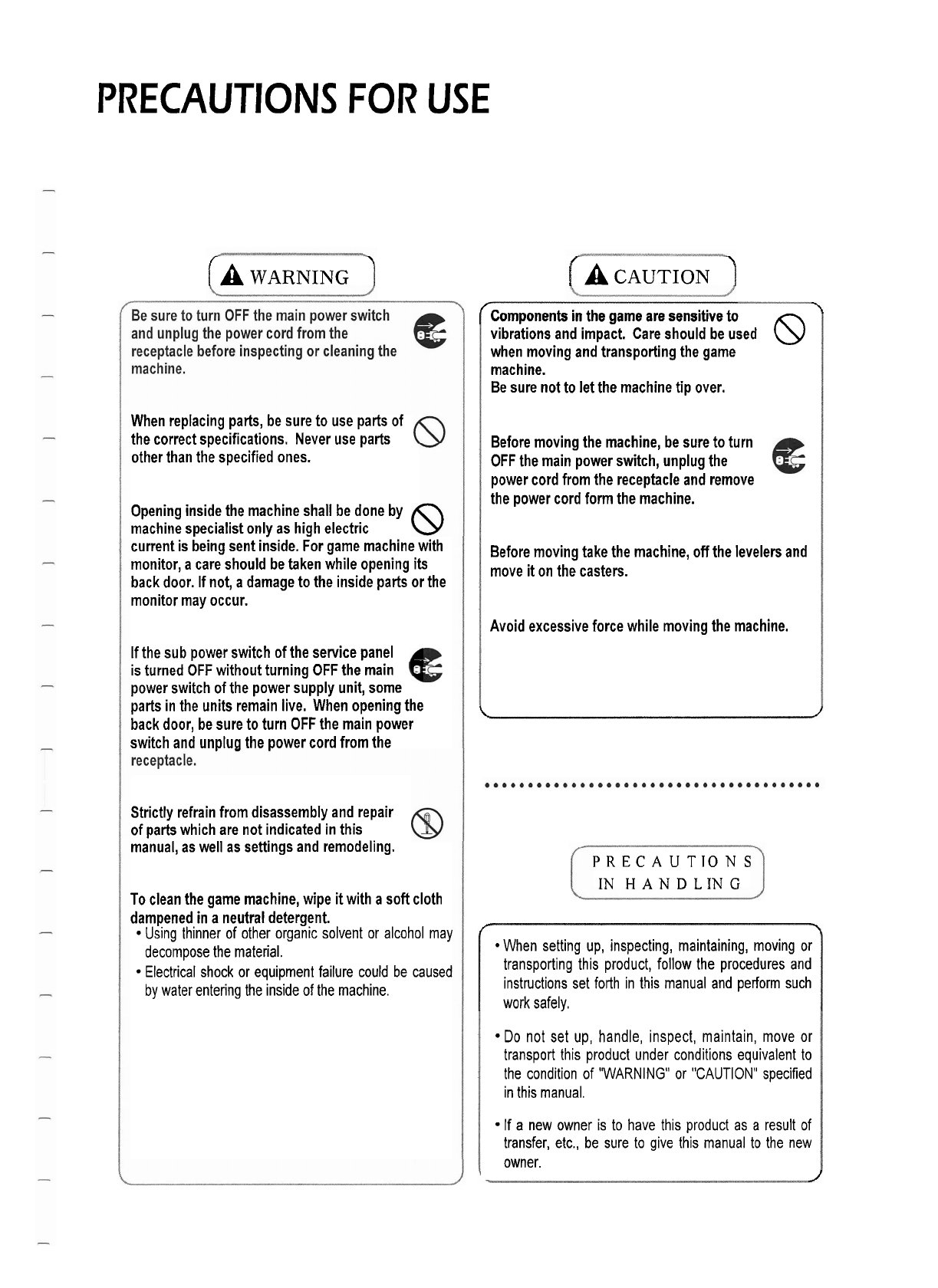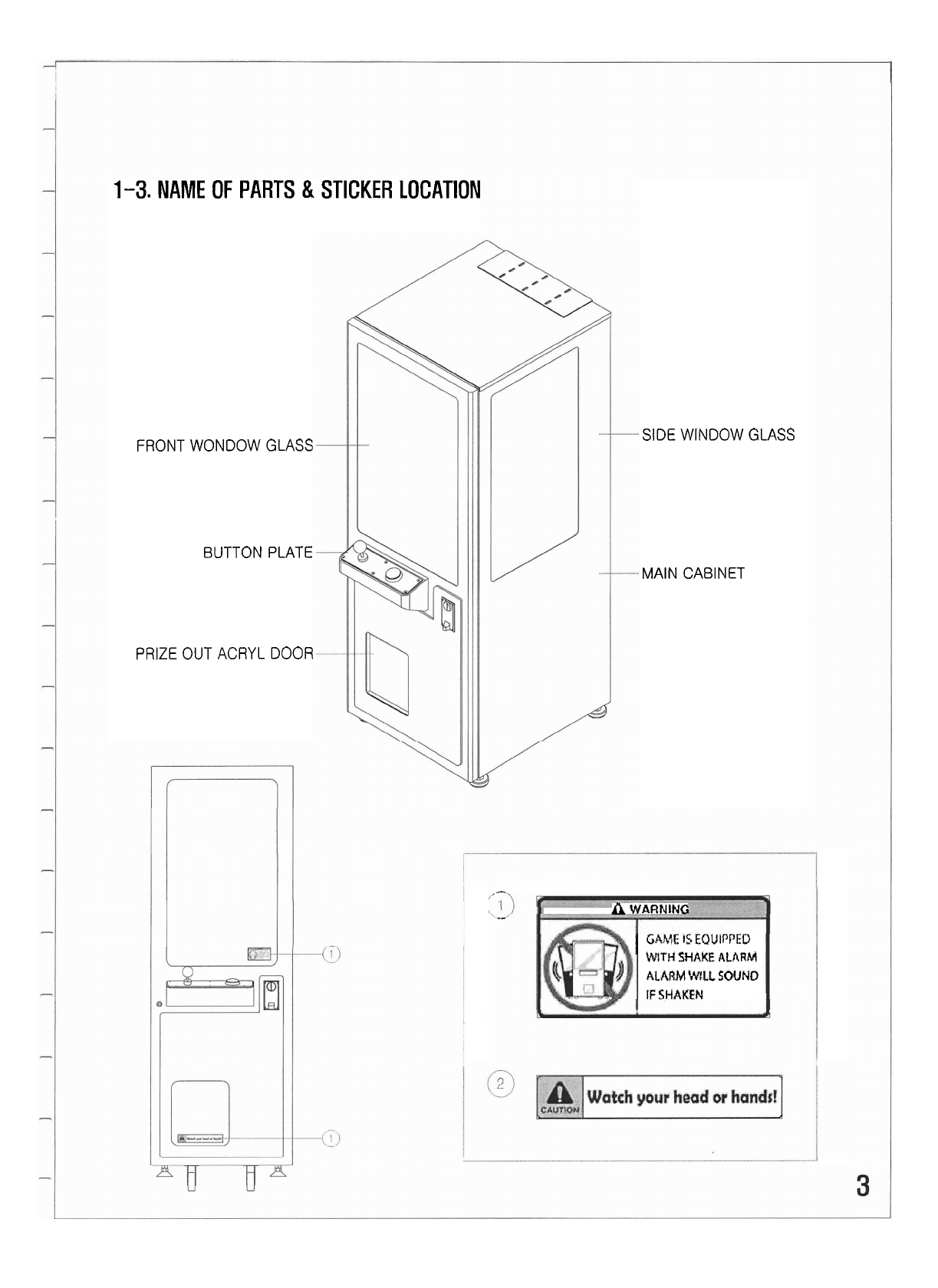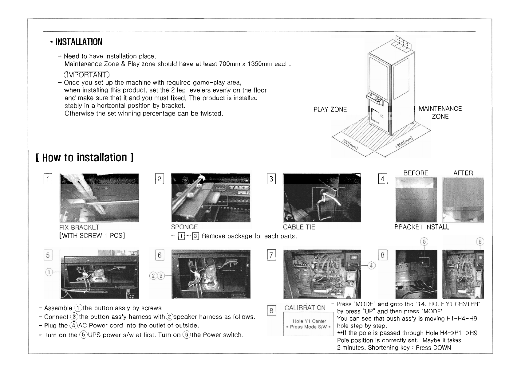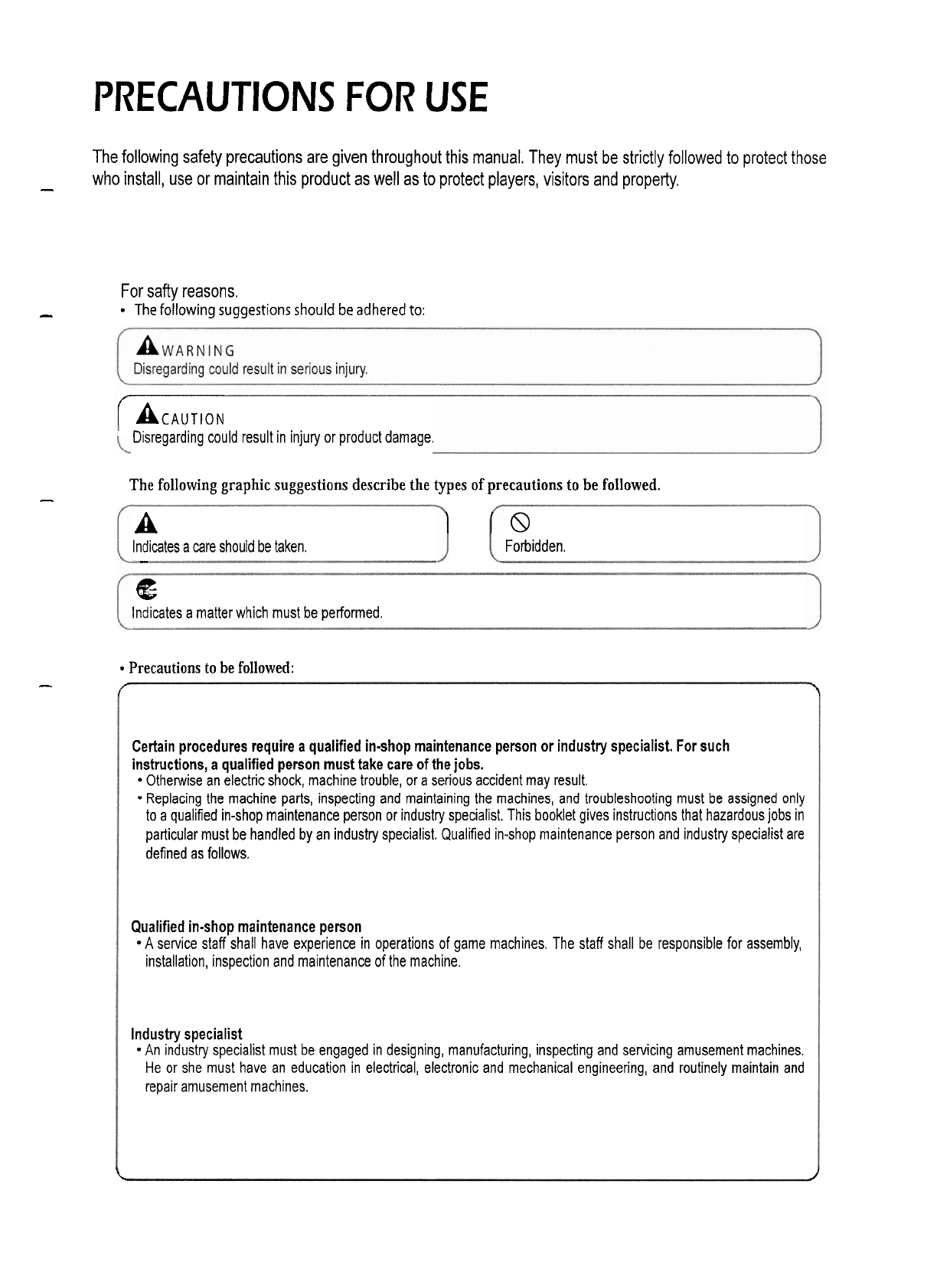 A service staff shall have experience in operations of game machines. The staff shall be responsible for assembly,