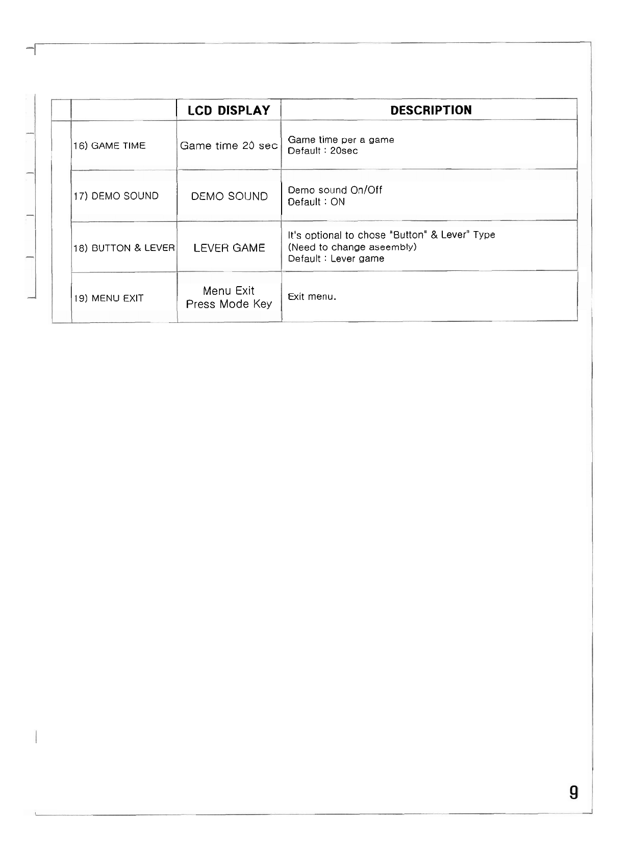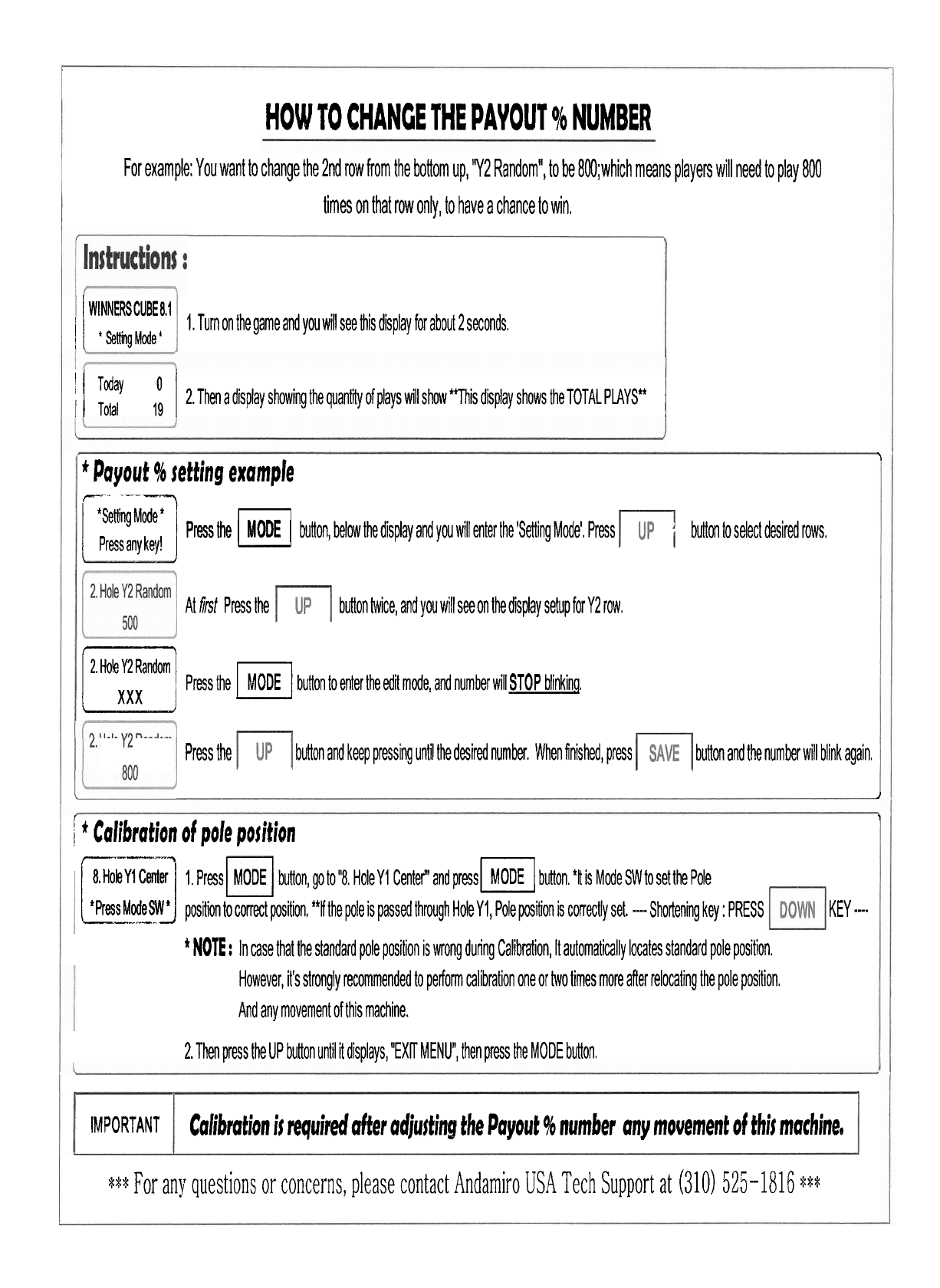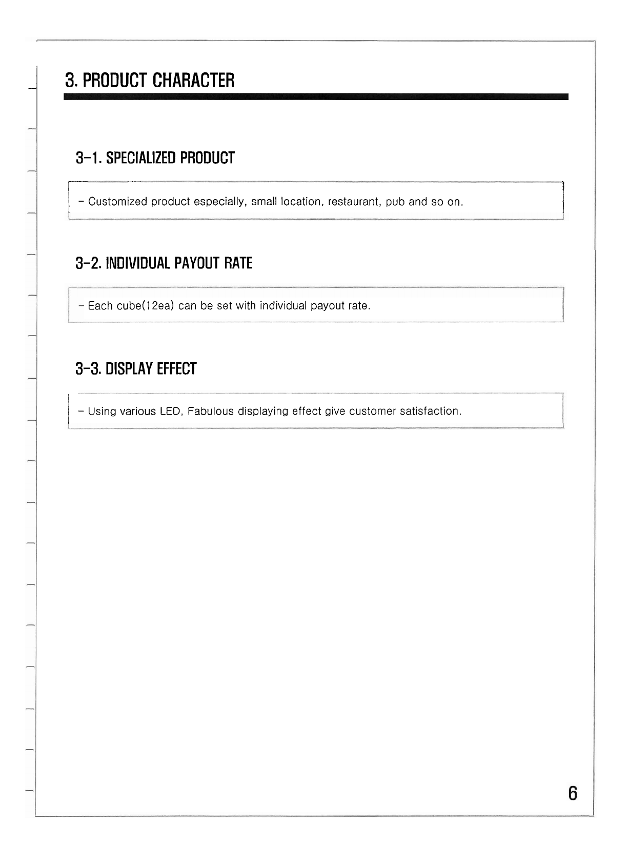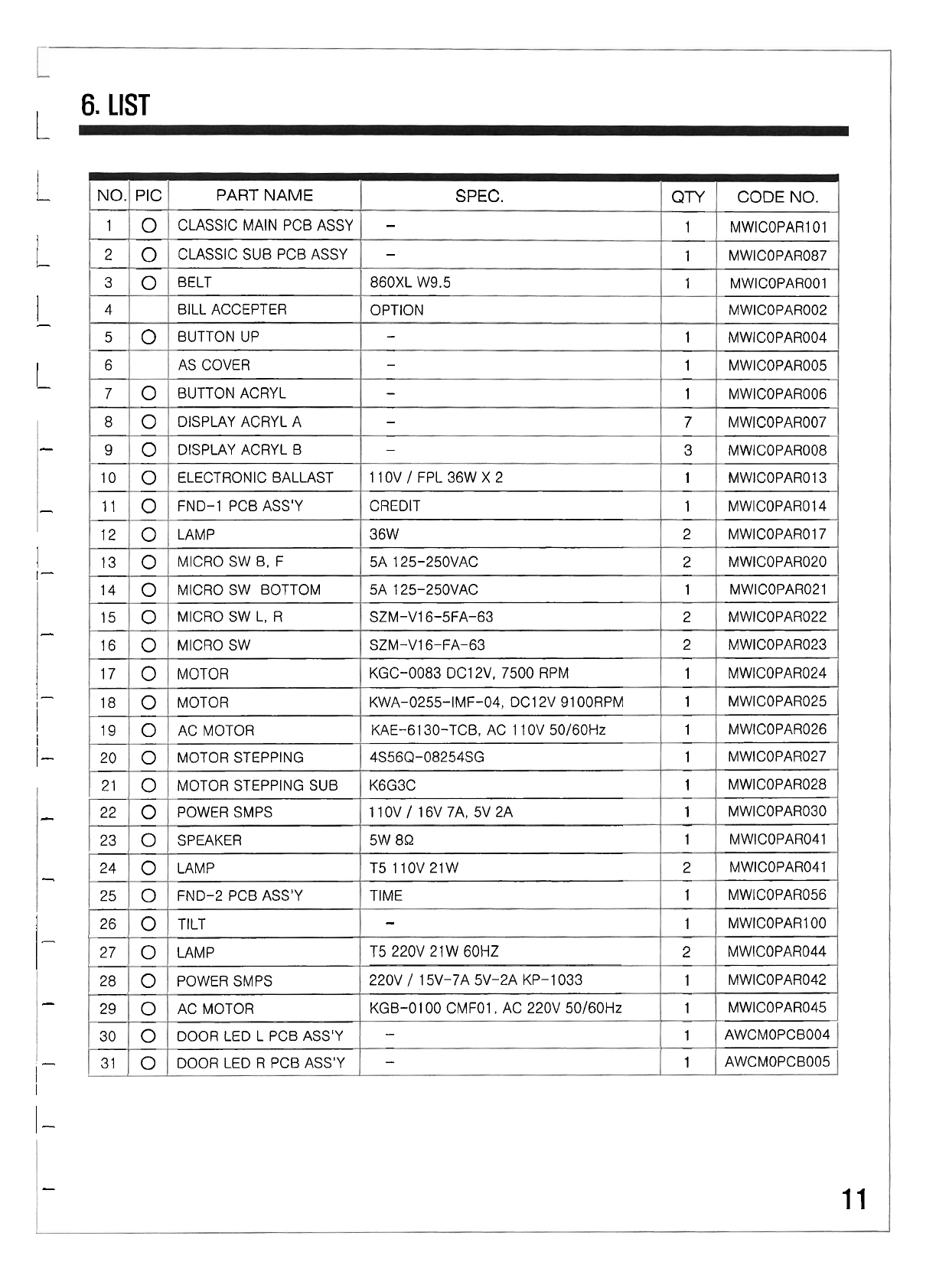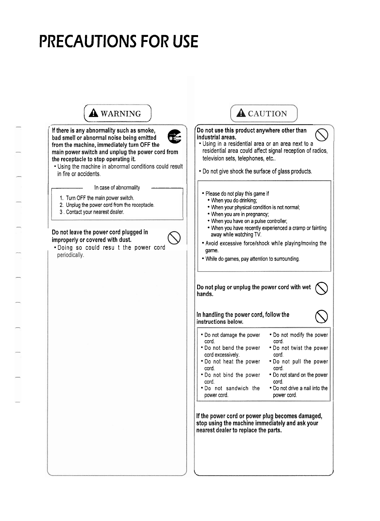 A service staff shall have experience in operations of game machines. The staff shall be responsible for assembly,