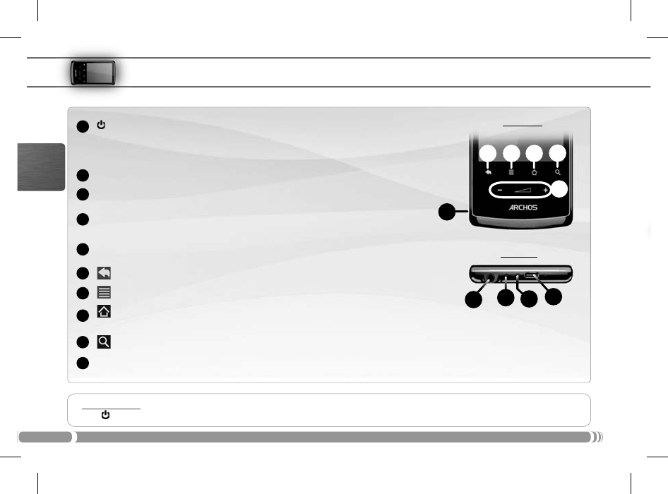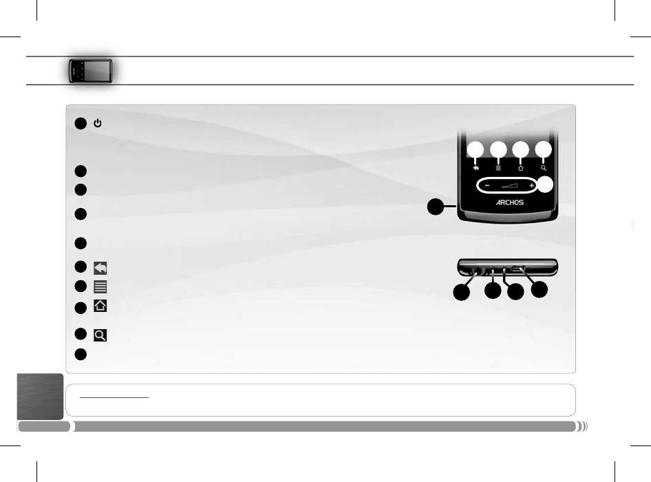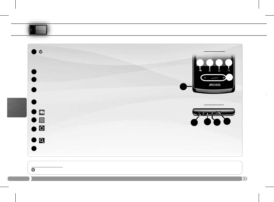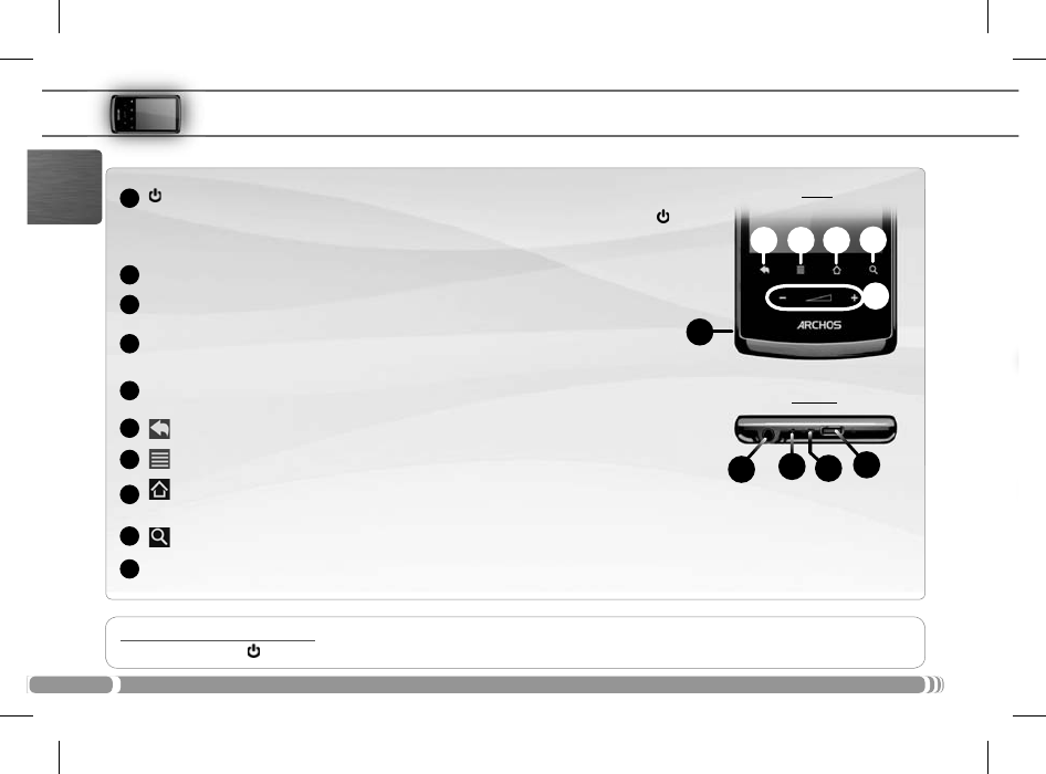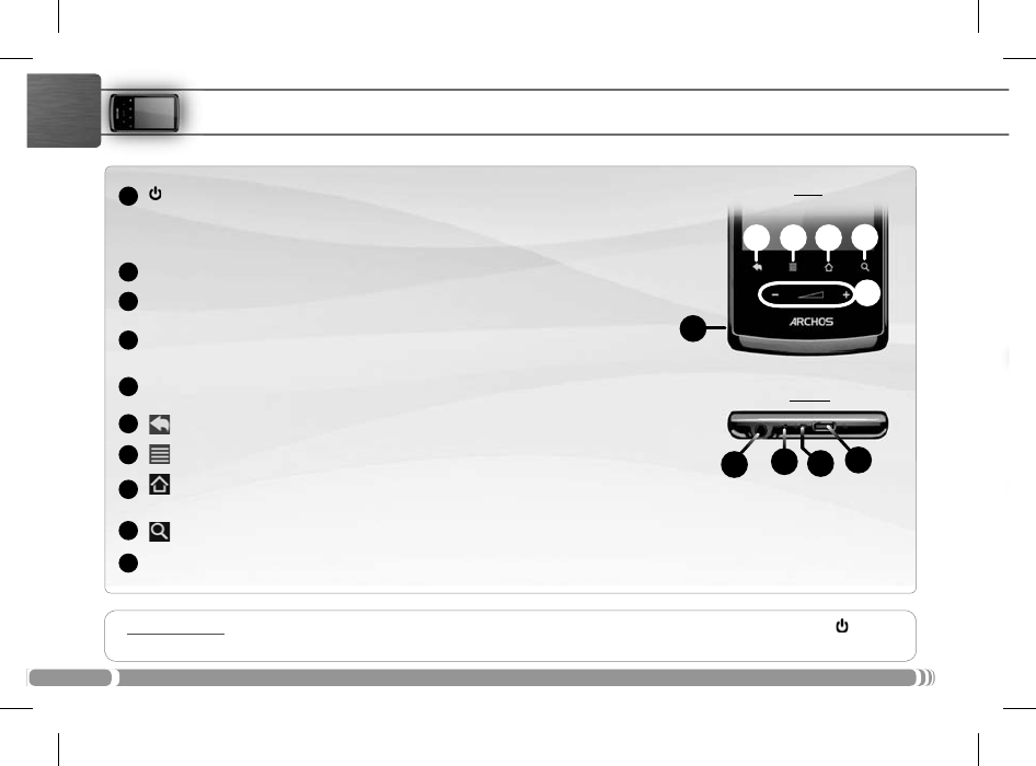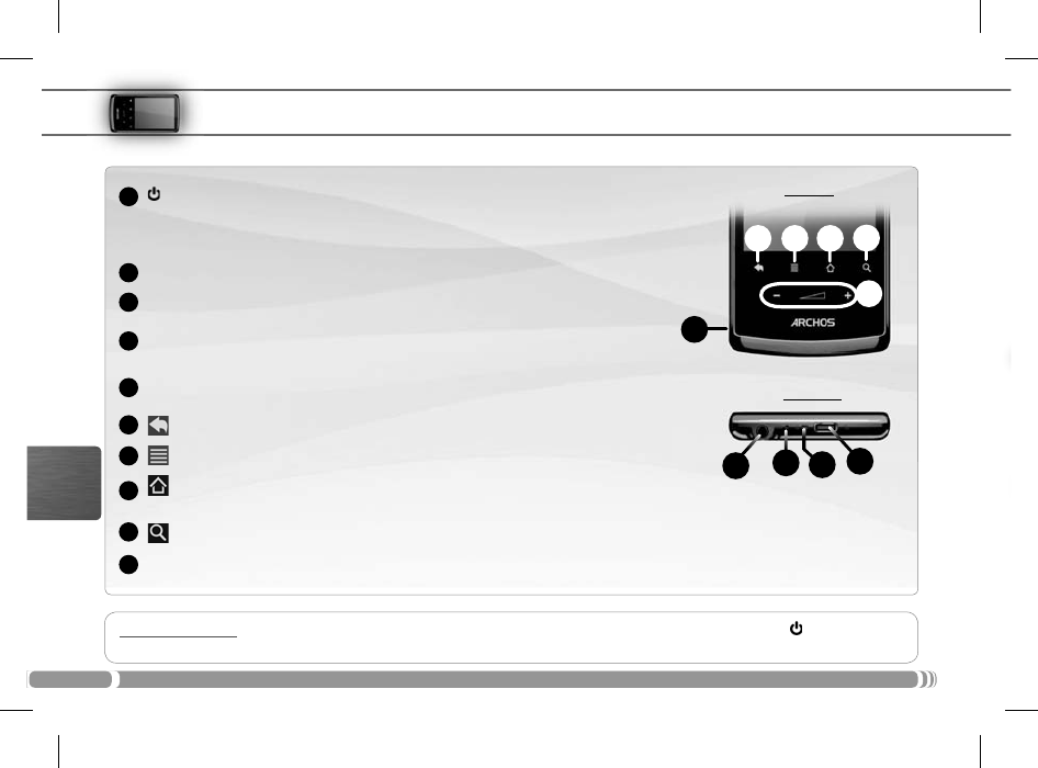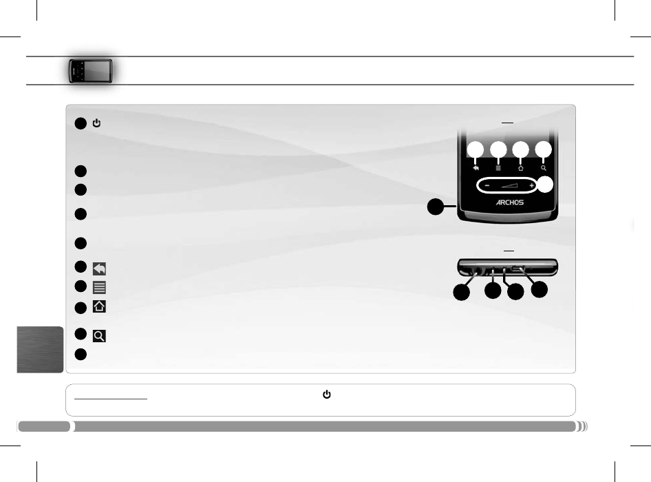 Hardware Reset: In the event that your ARCHOS freezes operation, you can force the device to shut down by holding the button