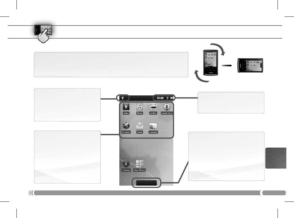 pomiĊdzy poziomym i pionowym. Twoje urządzenie zaopatrzone jest w dotykowy ekran.