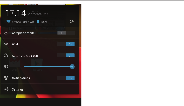 WARNING: Make sure that you are in a WiFi zone. You can access the WiFi settings quickly from