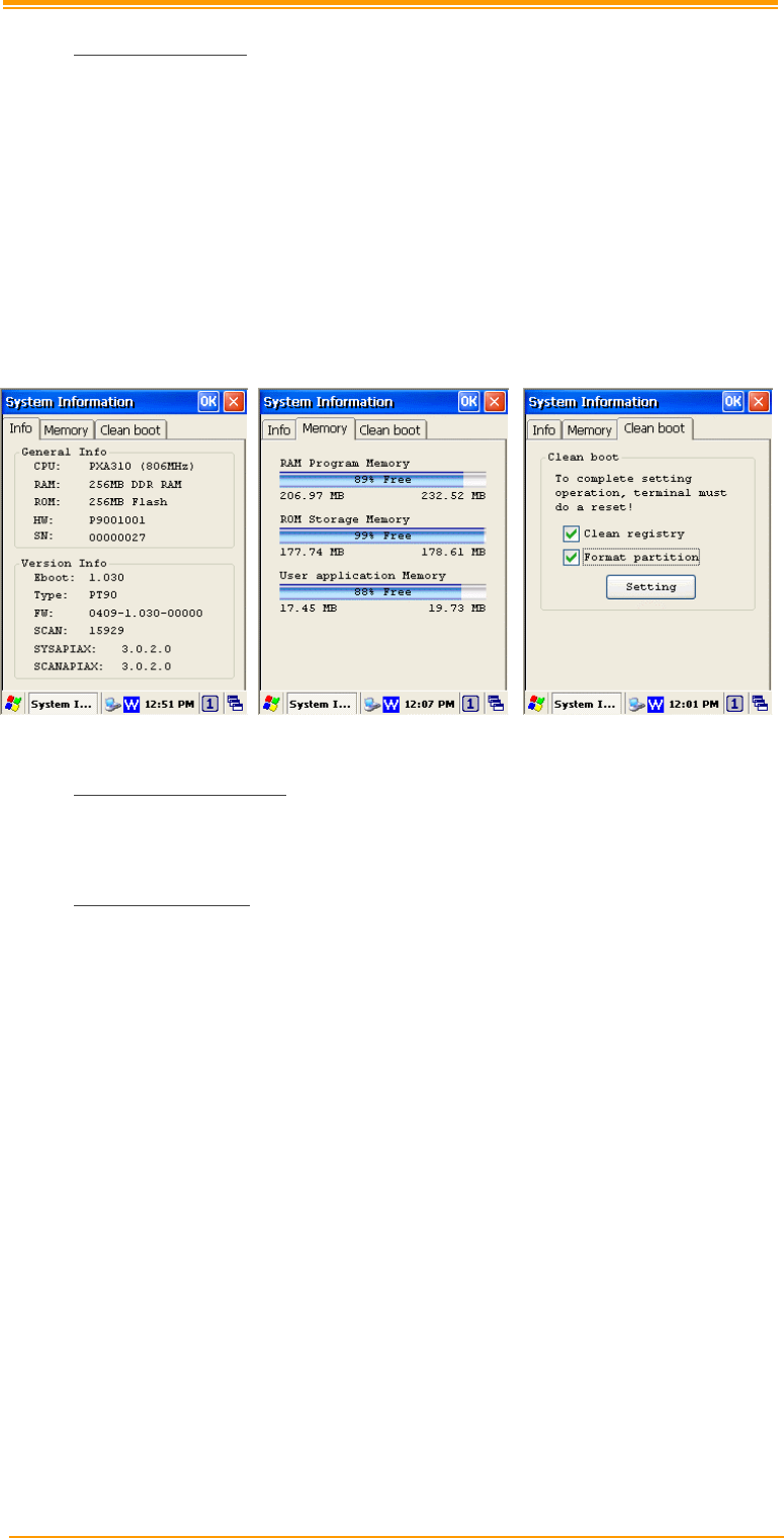Info page contained in the window includes operating system data such as CPU, ROM, RAM,