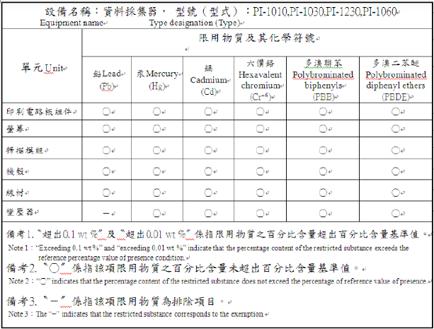 PI‐1010/PI‐1030/PI‐1060/PI‐1230