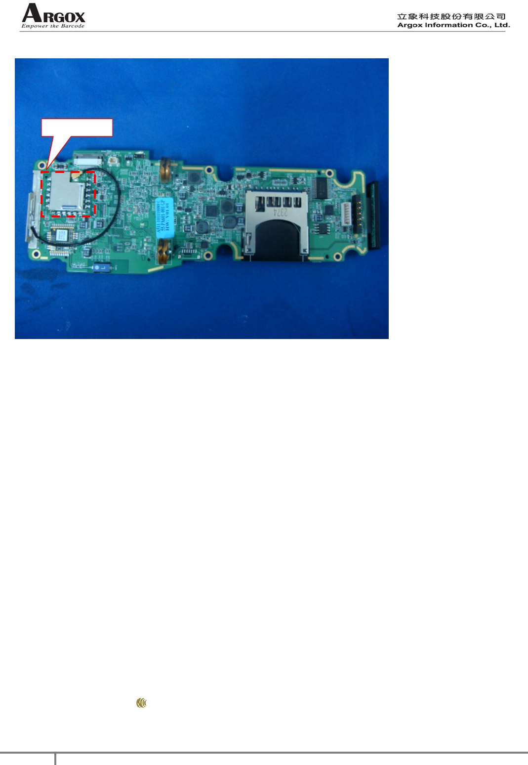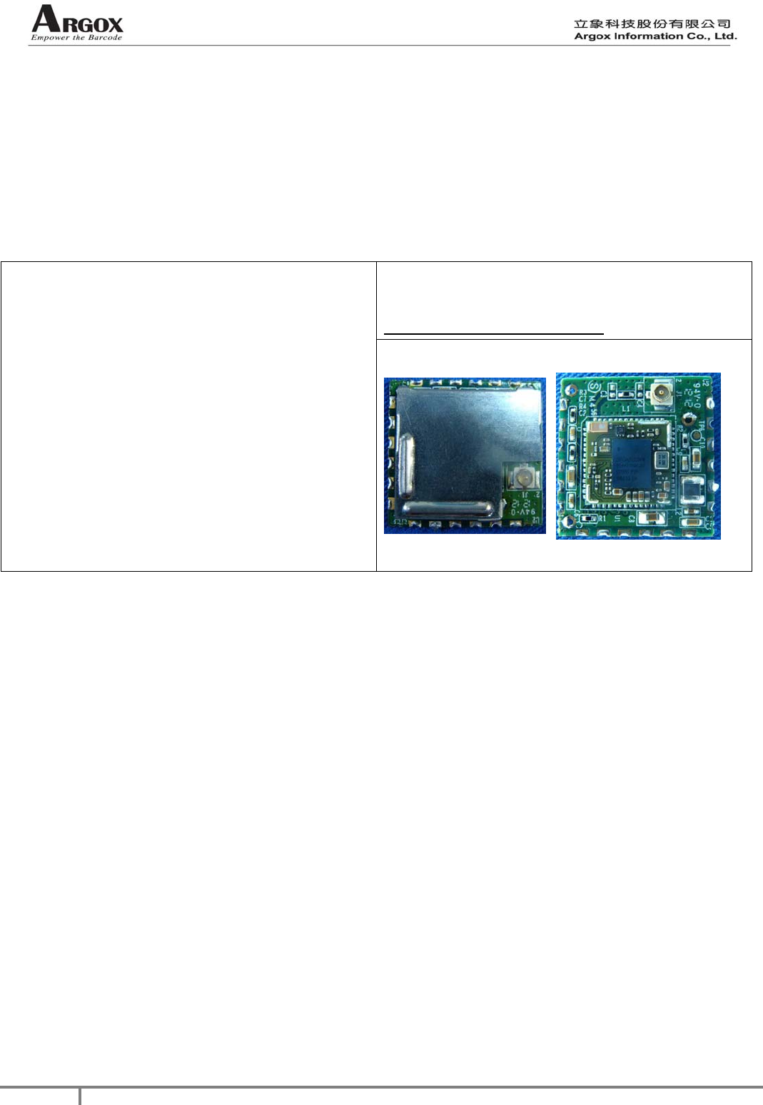The “PA-6030” is a test-hosted board for Argox Information Co., Ltd. “ARGOX-SDM-802.11 BGN” RF module.