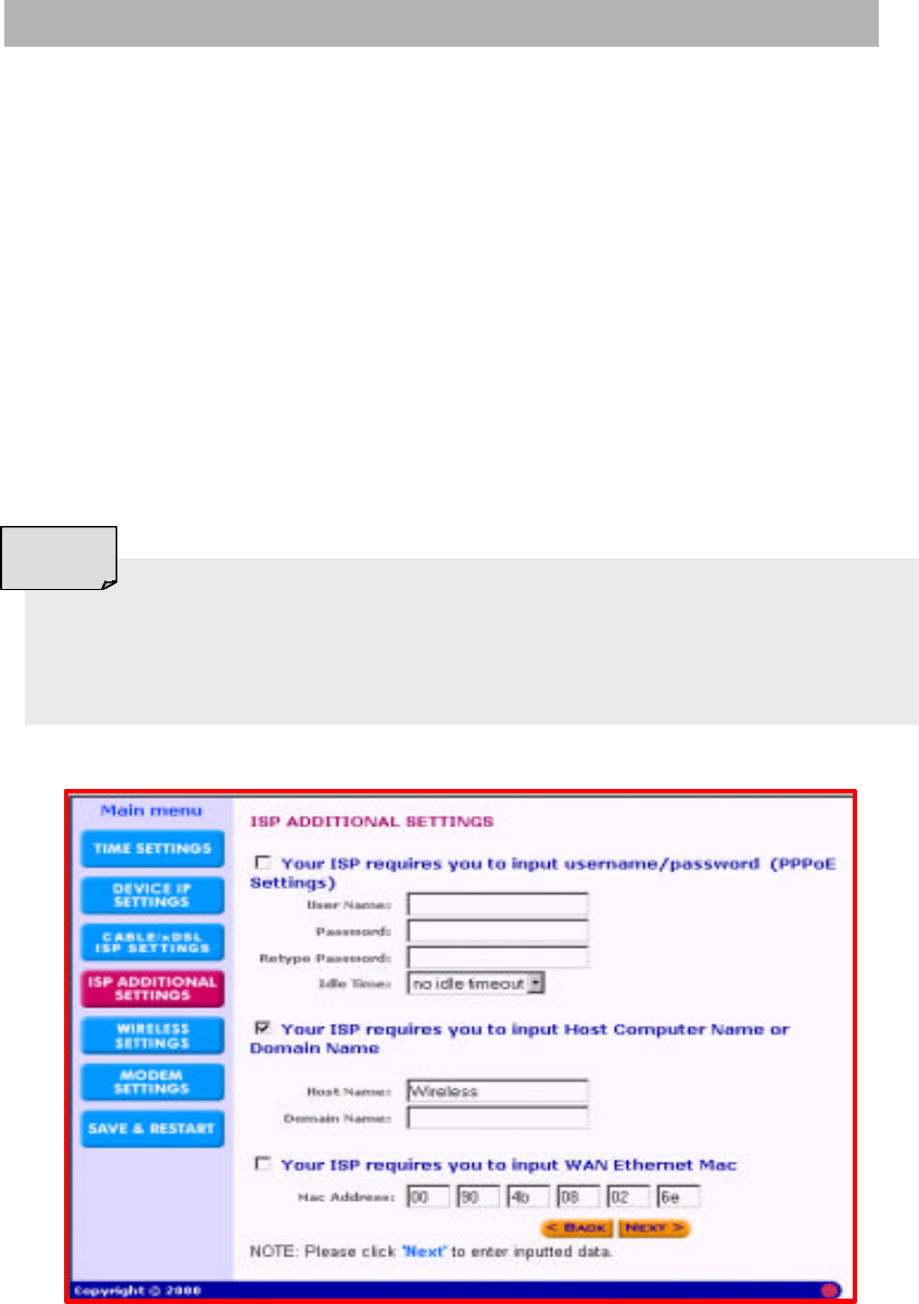 ISP ADDITIONAL SETTINGS(PPPOE SETTINGS)....................................................................18